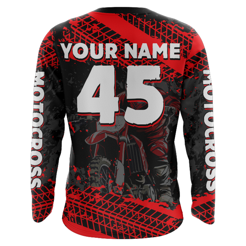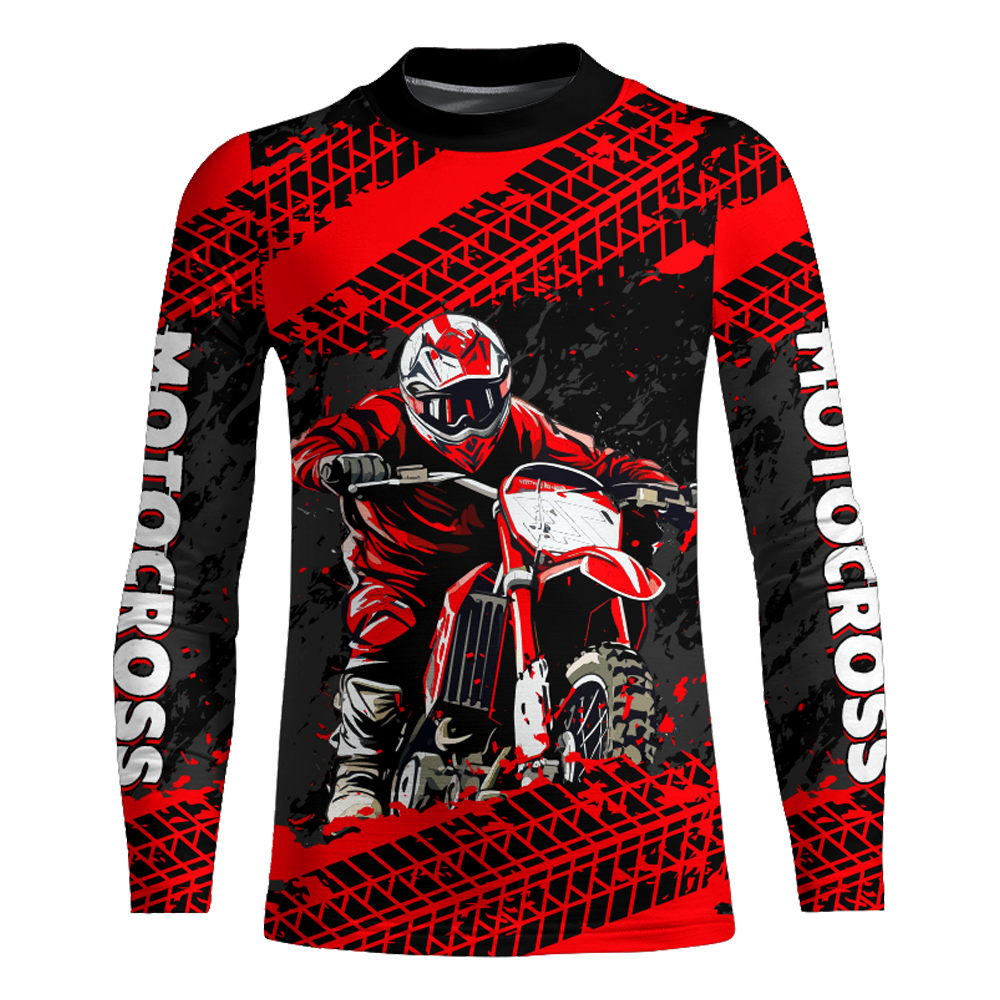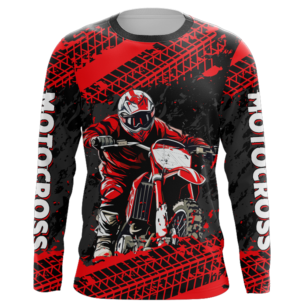 Custom Dirt Bike Motocross Racing Jersey Youth Kid Men UPF30+ Off-Road Riding Shirt Red XM228