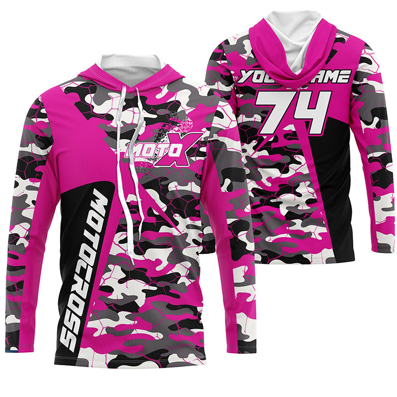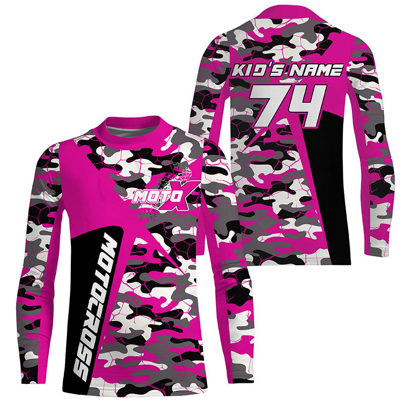 Custom Kid Men Women Dirt Bike Jersey UV Protective Extreme Pink Camo Motocross Racing Shirt PDT375
