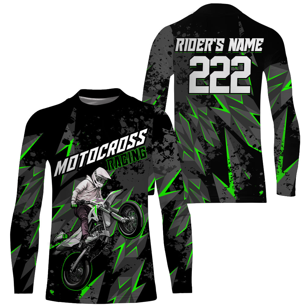 Custom Motocross Jersey Kid Men Women UPF30+ Green Dirt Bike Shirt MX Riding Off-Road Motorcycle PDT628