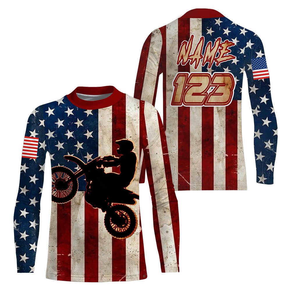 Custom Motocross Jersey Youth Men UPF30+ American Flag Dirt Bike Shirt Extreme Off-Road Motorcycle PDT619