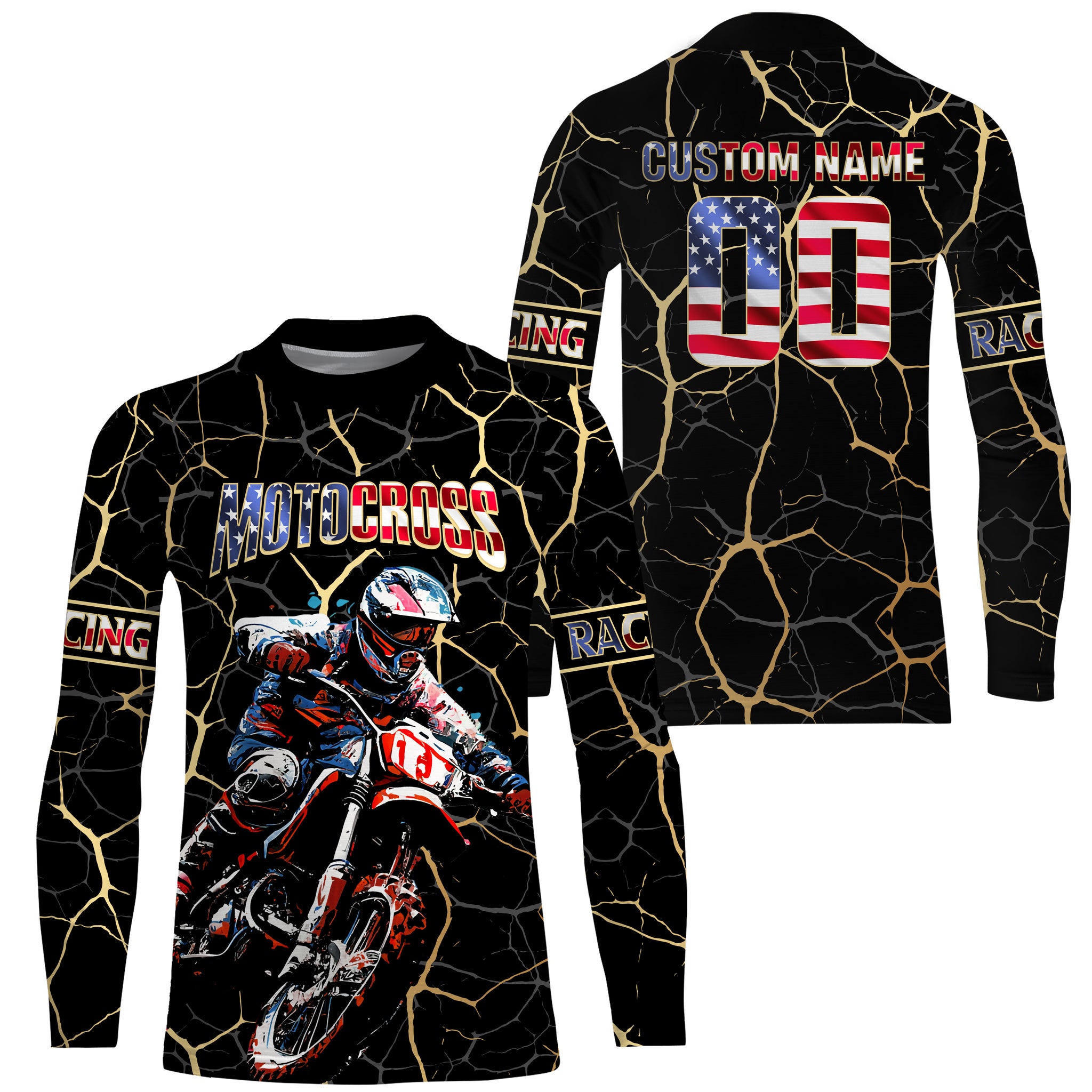 Custom Motocross Jersey Youth Men Women UPF30+ American Flag MX Dirt Bike Shirts Motorcycle PDT706