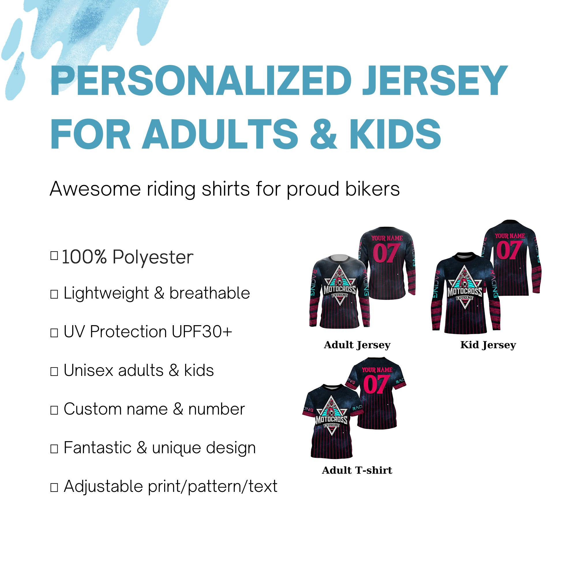 Custom Motocross racing jersey kid adult extreme UPF30+ motorcycle pink dirt bike shirt off-road PDT306