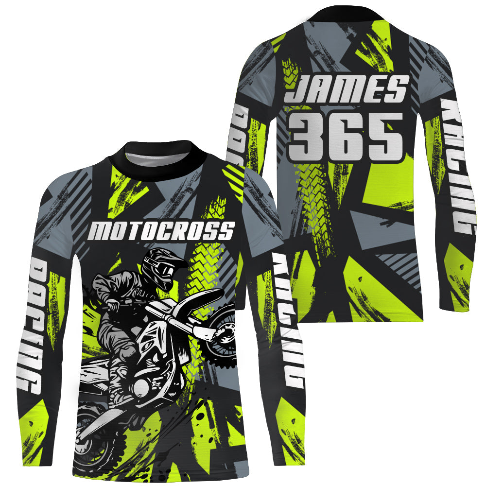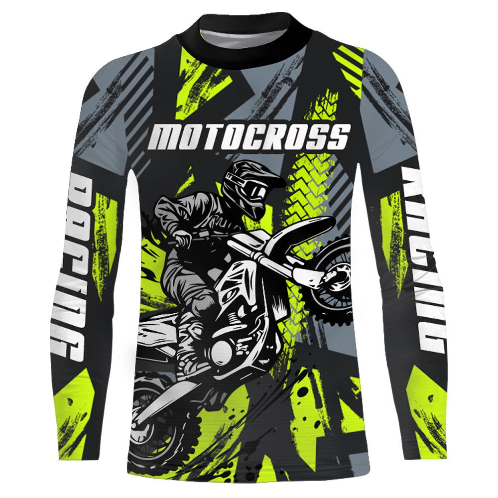Custom Motocross Racing Jersey Men Kid Dirt Bike Shirt UPF30+ Off-Road Shirt Lime Green XM237