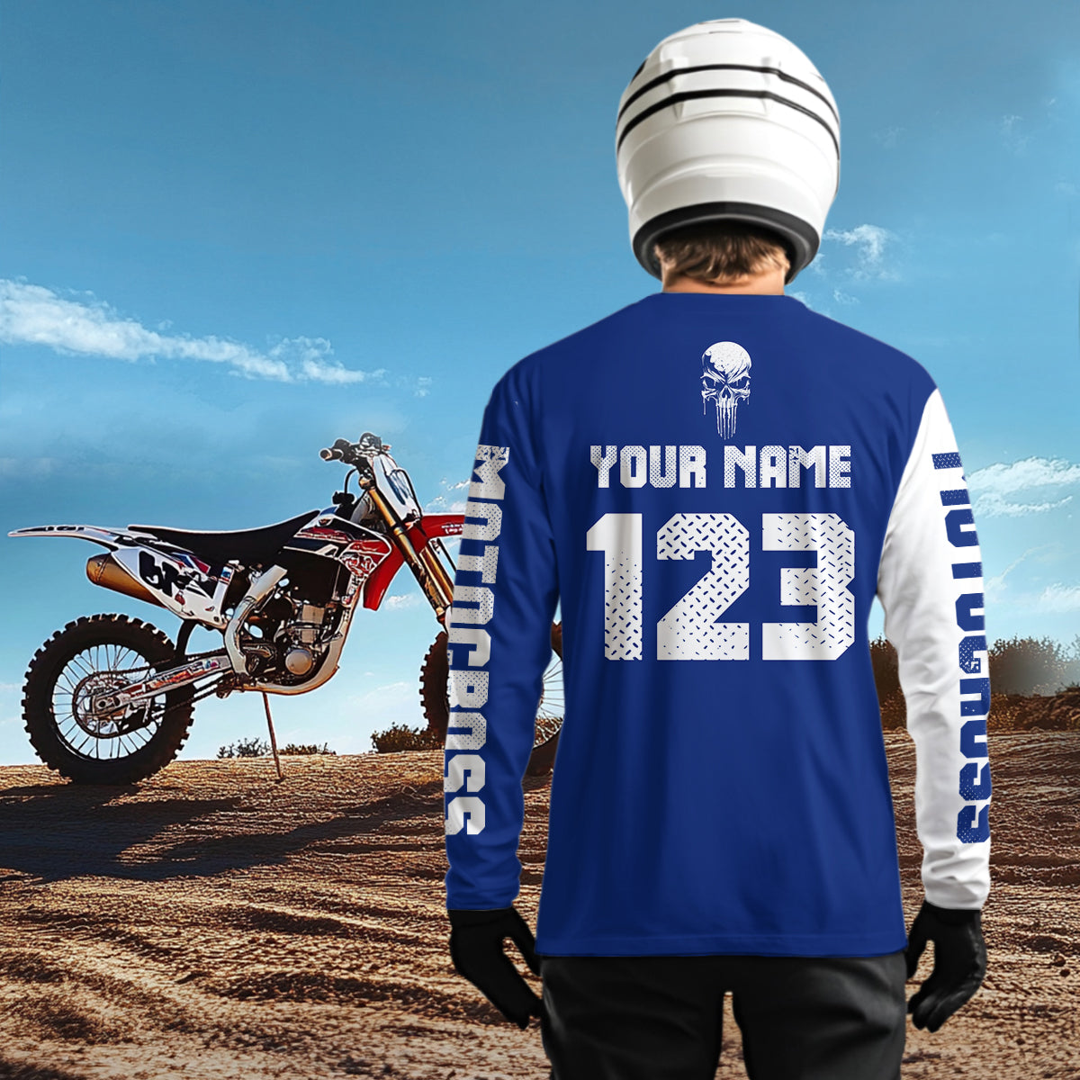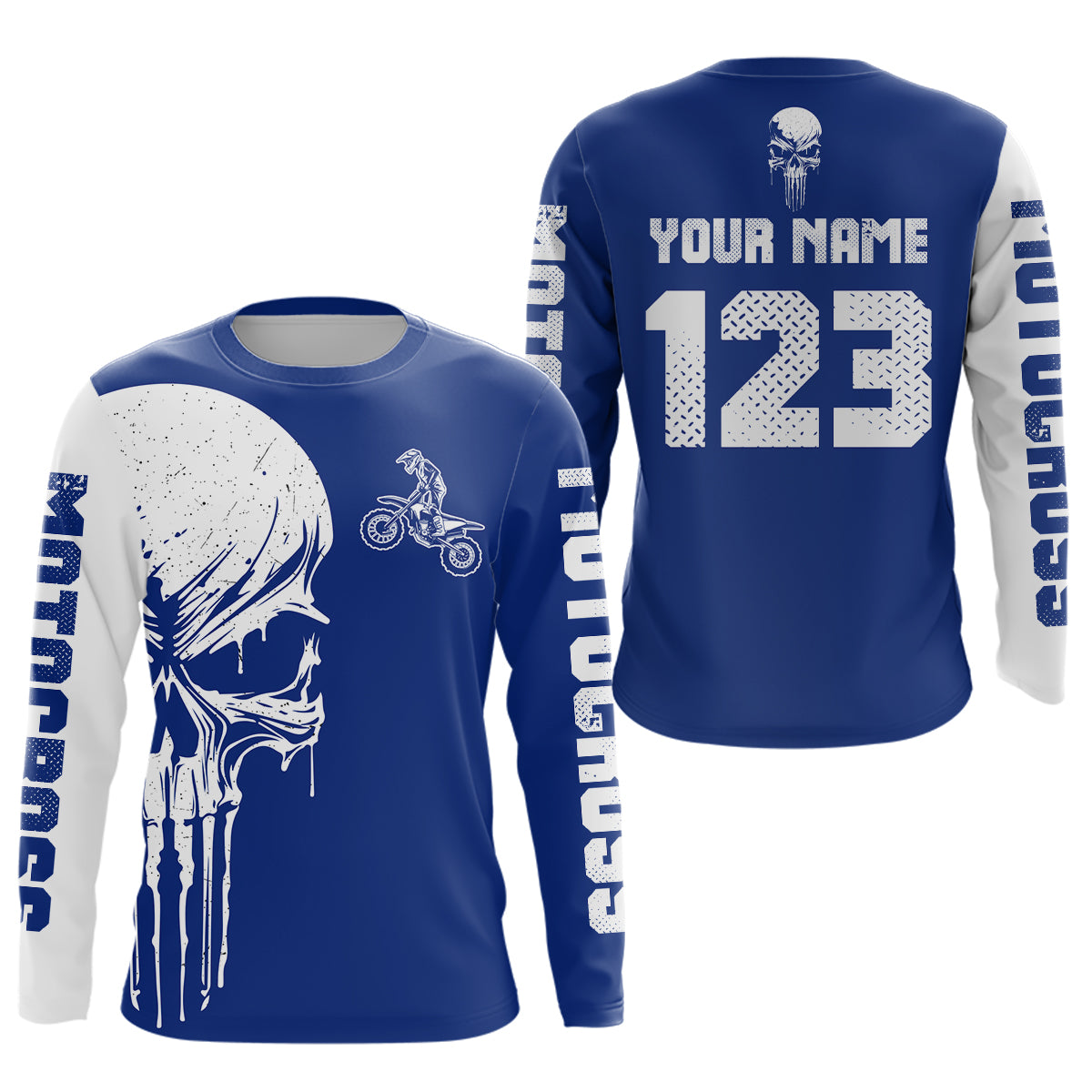Custom Skull Motocross Jersey for Kid Men Women Blue Skull Dirt Bike Racing Shirt XM335