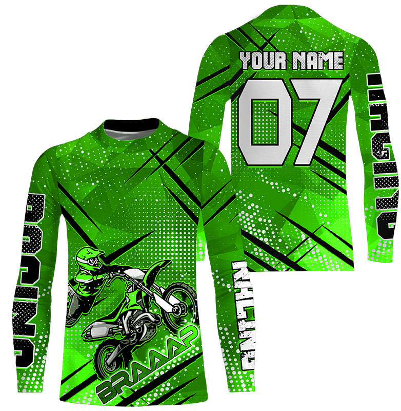 Dirt bike racing jersey custom green Motocross youth men women UPF30+ off-road extreme MX shirt PDT335