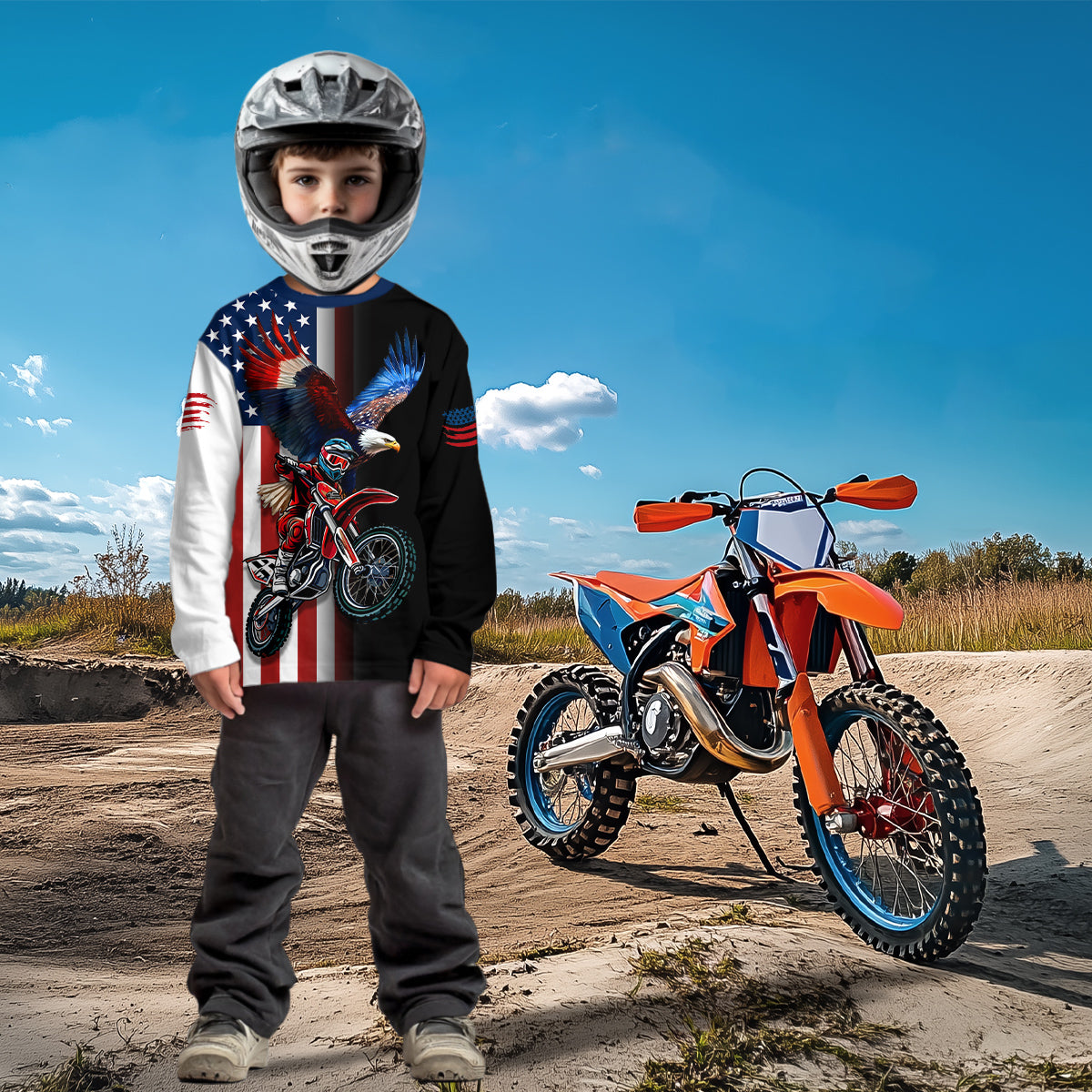 Eagle American Flag Motocross Jersey Dirt Bike Racing Shirts for Men Kid Women XM348