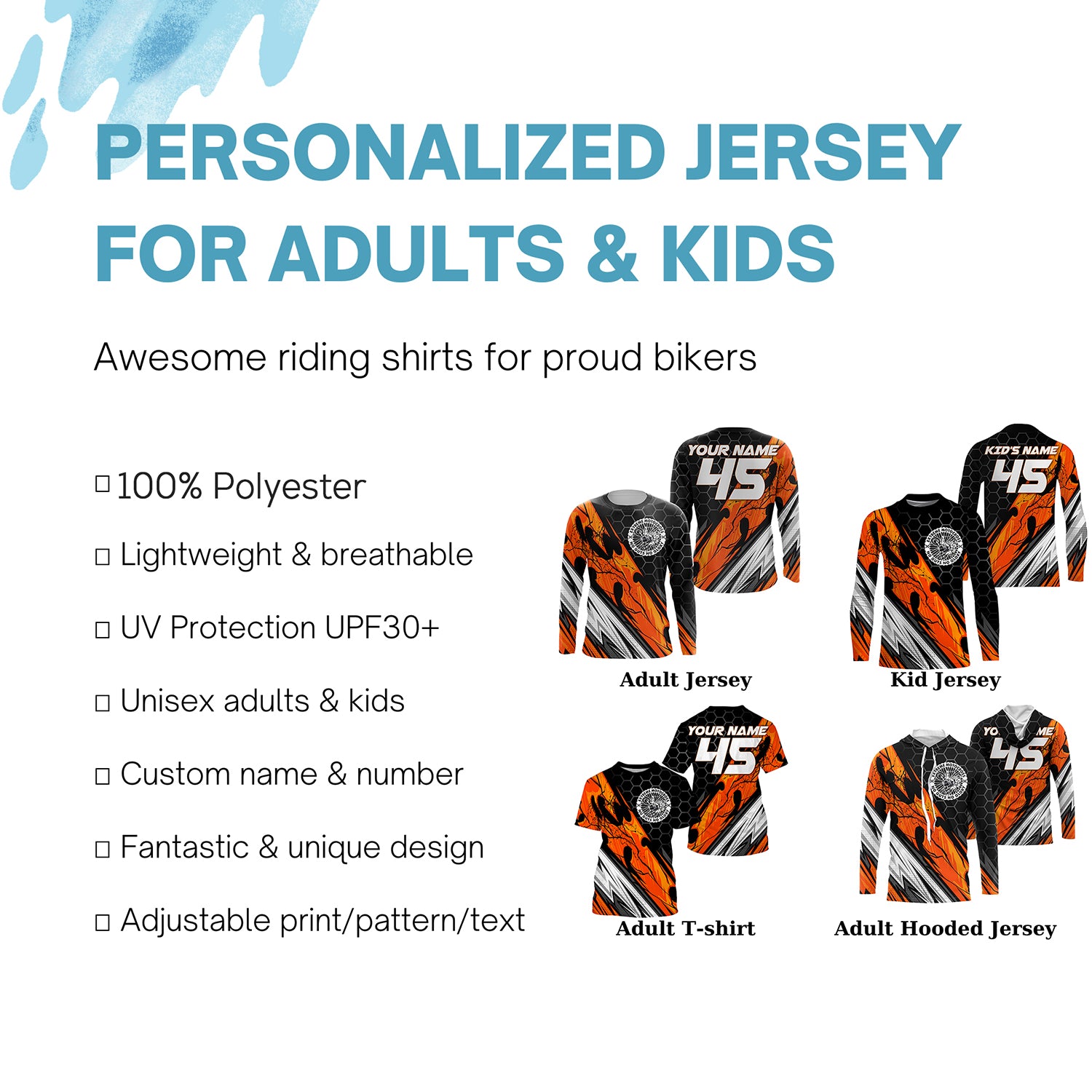 - PERSONALIZED RIDING JERSEY: This super cool shirt is exactly what all bikers are looking for. Add your name/number to make it a unique one that bears your own imprints.