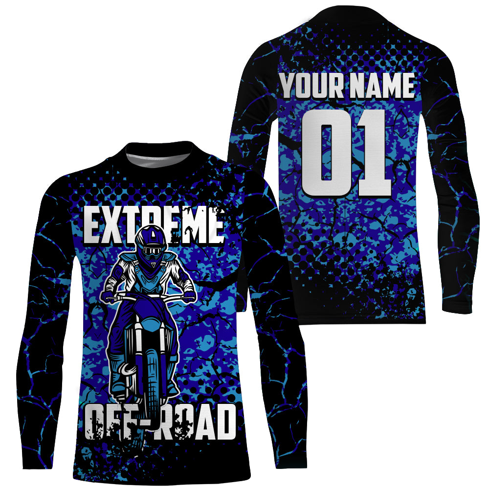 Extreme Off-road Personalized Jersey UPF30+ Blue Motocross Supercross Dirt Bike Racing Shirt NMS1387