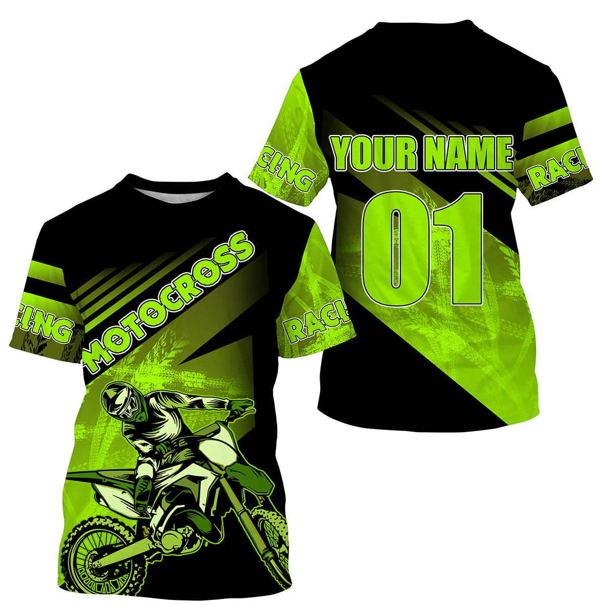 Green Custom Motocross Jersey UPF30+ Dirt Bike Racing Adult&Kid Off-Road MX Motorcycle Shirt| NMS777