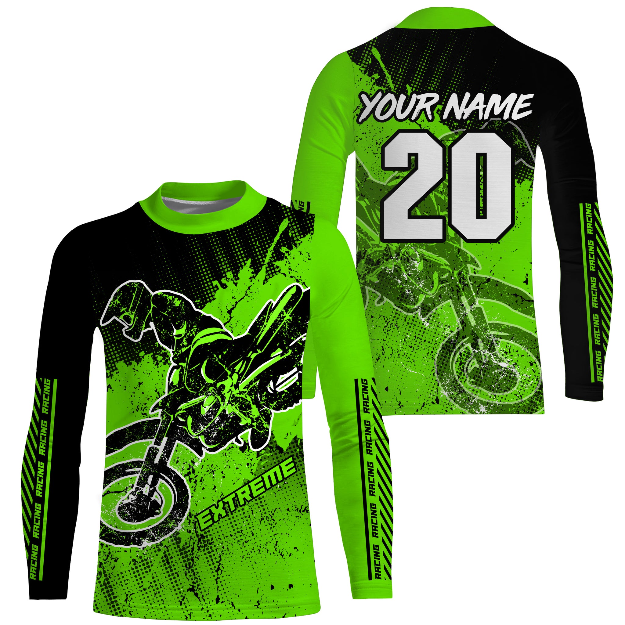 Green Motocross kid men women jersey custom UPF30+ extreme off-road dirt bike shirt motorcycle PDT330
