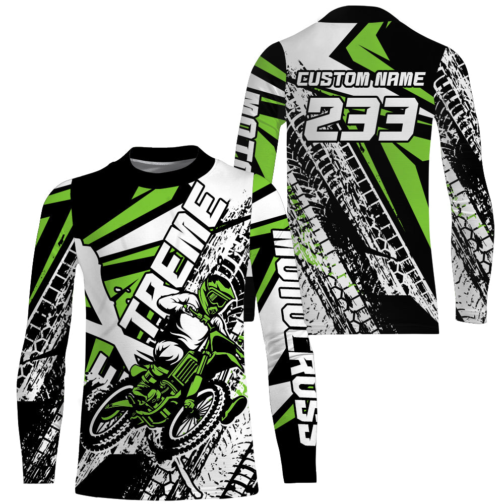 Green Motocross Racing Jersey Kid Men Women UPF30+ Custom Dirt Bike Extreme MX SX Racing Shirt PDT480