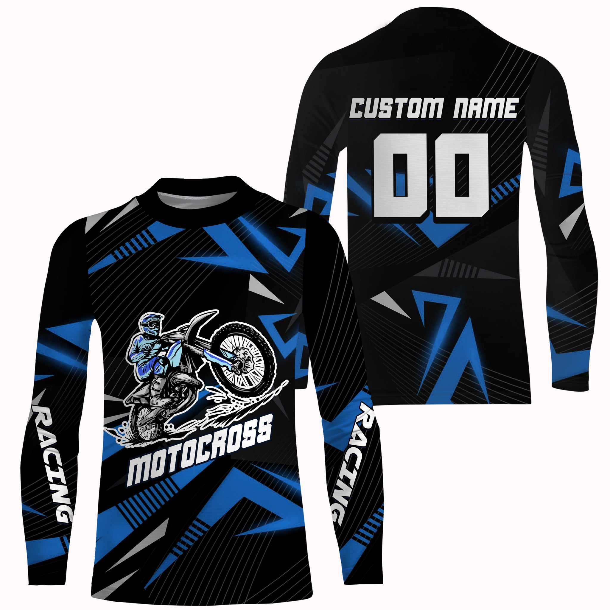 Kid Men Women Dirt Bike Jersey Custom UPF30+ Youth Blue Motocross Shirt Off-Road MX Motorcycle PDT632