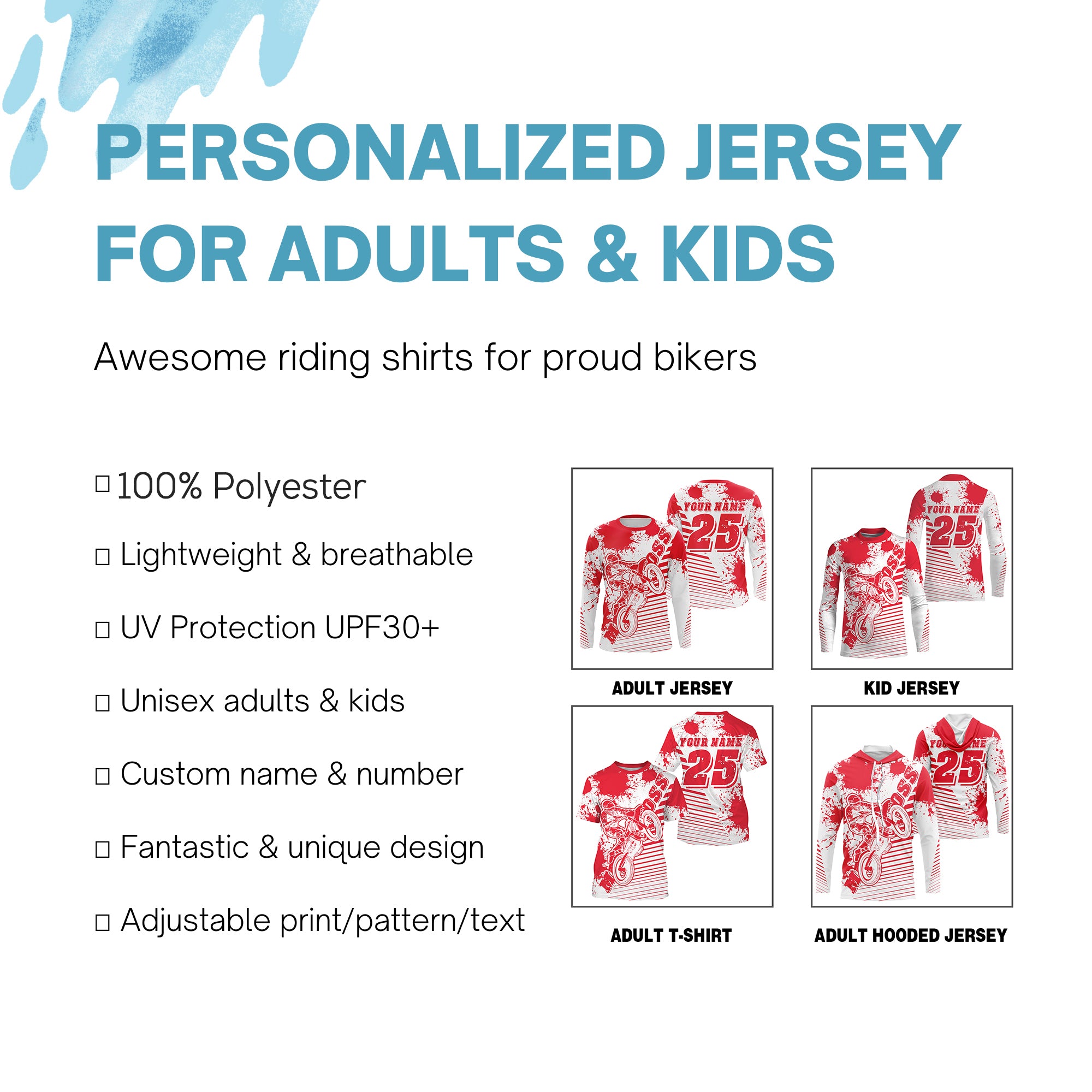 - PERSONALIZED RIDING JERSEY: This super cool shirt is exactly what all bikers are looking for. Add your name/number to make it a unique one that bears your own imprints.