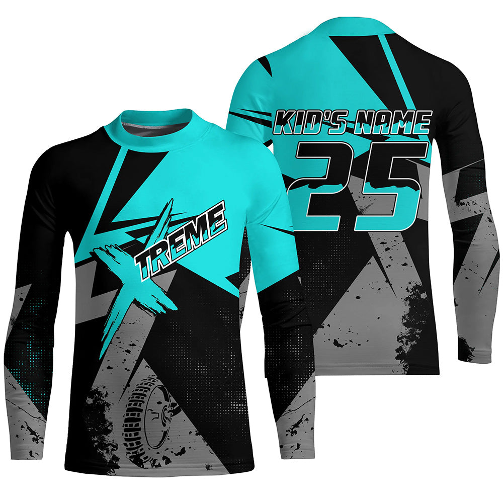 Men Women Kid Dirt Bike Jersey Blue UPF30+ Extreme Motocross Shirt Boys Girls MX Jersey Motorcycle PDT544