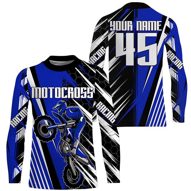Blue Motocross Men Women Kid Jersey UPF30+ Custom Dirt Bike Off-Road Jersey Extreme Racing Shirt PDT372