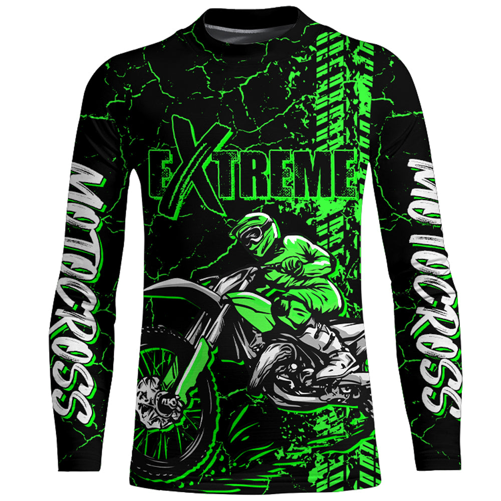 Motocross Racing Shirt Men Youth UPF30+ Dirt Bike Jersey Green MX Off-Road Long Sleeve XM136