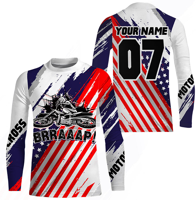 Patriotic Personalized Dirt Bike Jersey UPF30+ Brap MX Racing American Flag Motocross Shirt NMS1252