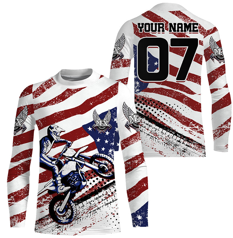 Personalized American flag MX jersey kid women men UPF30+ Patriotic dirt bike shirt off-road PDT360