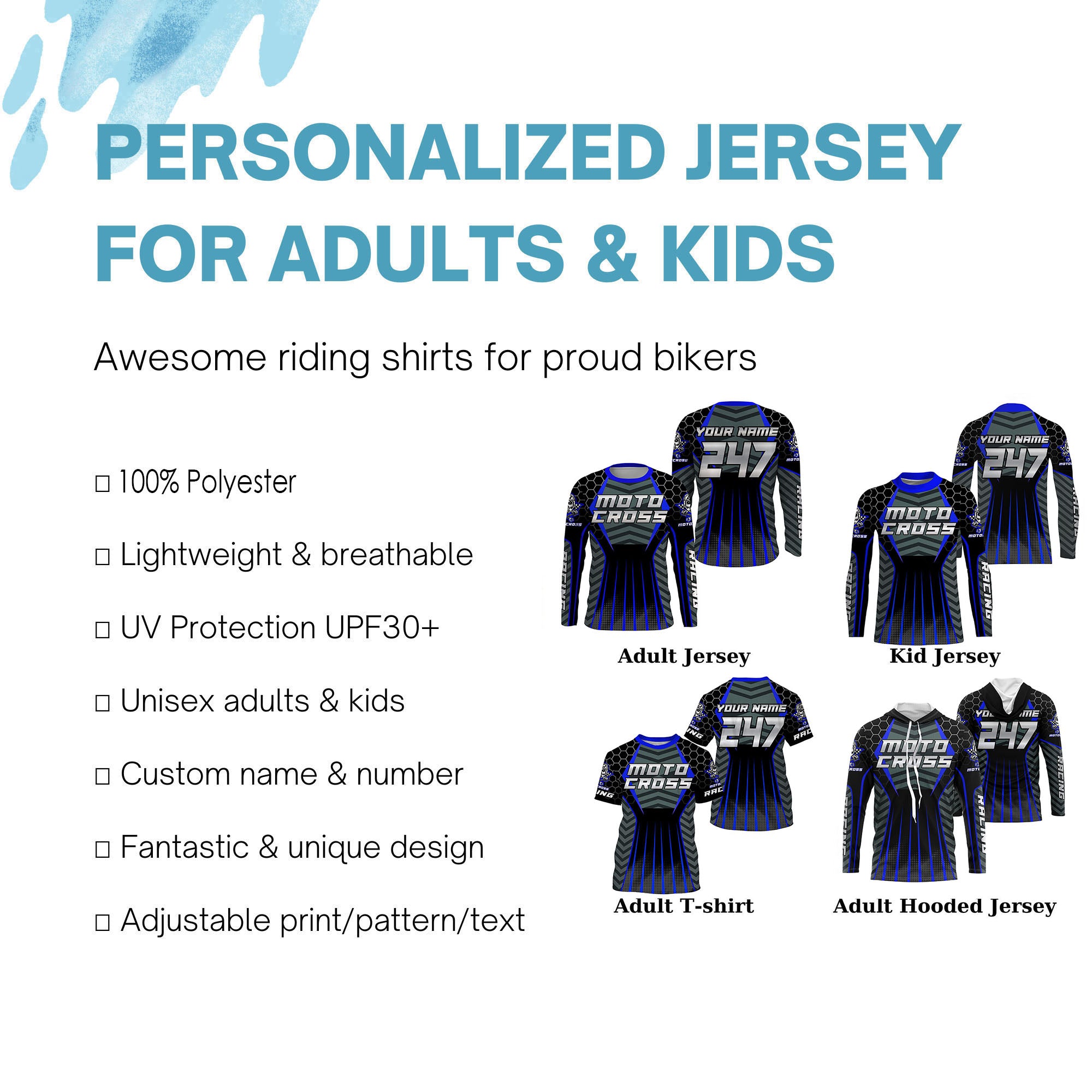 - PERSONALIZED RIDING JERSEY: This super cool shirt is exactly what all bikers are looking for. Add your name/number to make it a unique one that bears your own imprints.