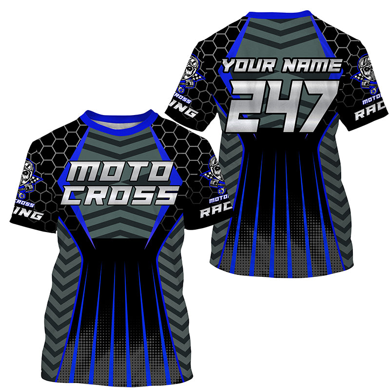 Personalized blue Motocross jersey men women kid racing UPF30+ dirt bike offroad motorcycle shirt PDT302