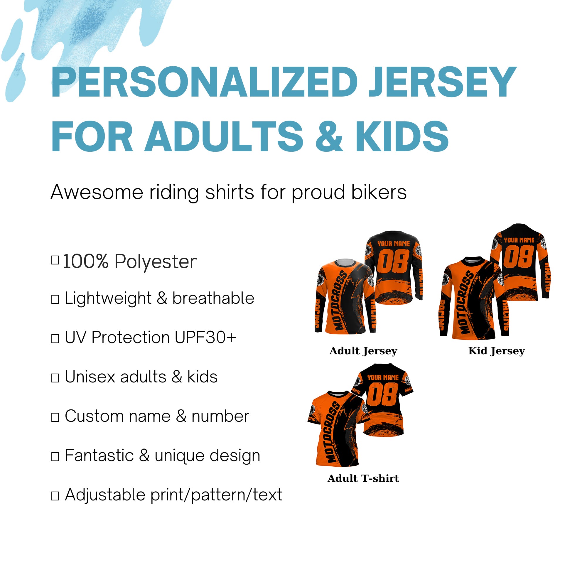 Personalized kid men women Motocross jersey upf30+ orange Dirt Bike off-road shirt motorcycle PDT421