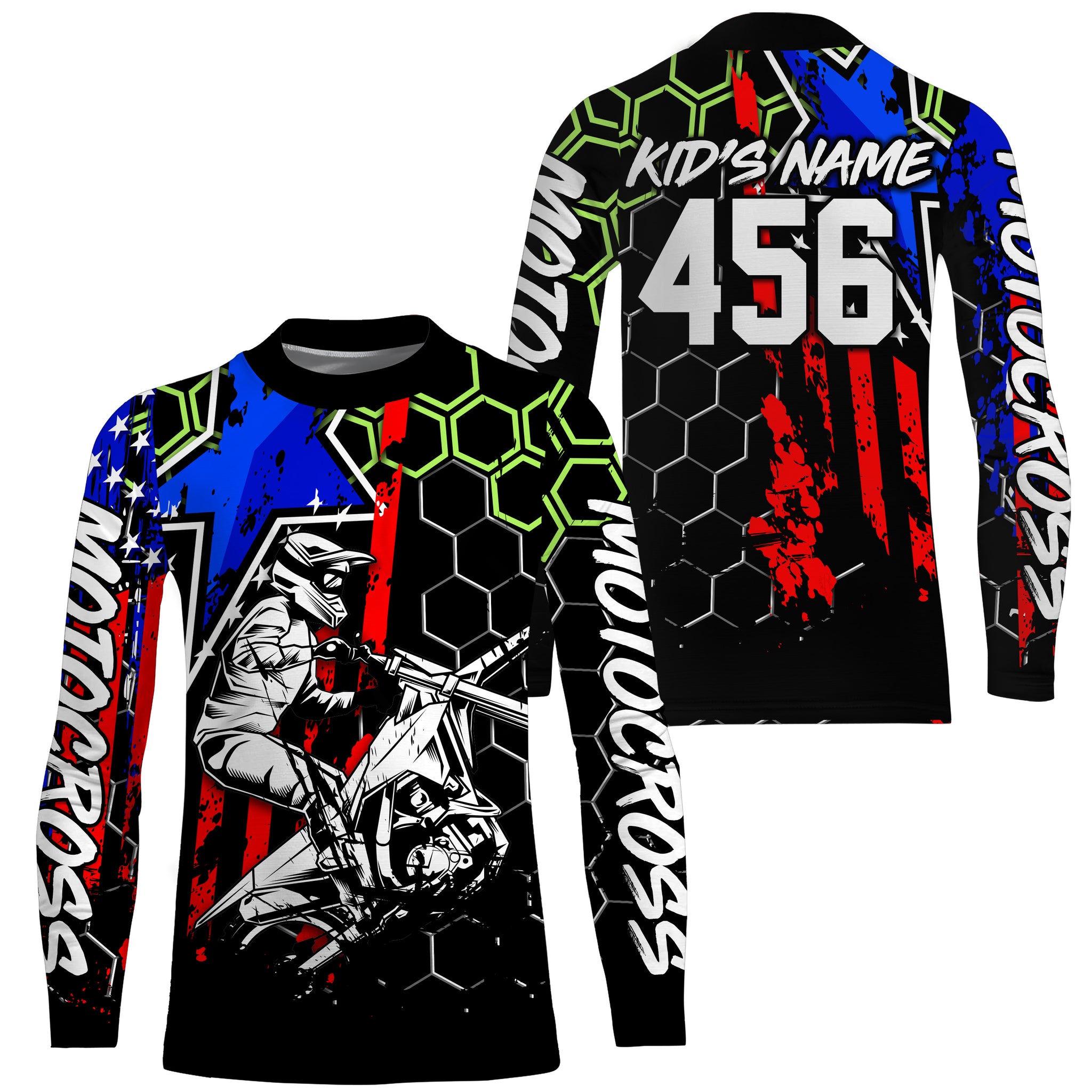 Personalized Motocross Jersey Kid Men UPF30+ US Flag Dirt Bike Shirt MX Racing Off-Road Motorcycle PDT625