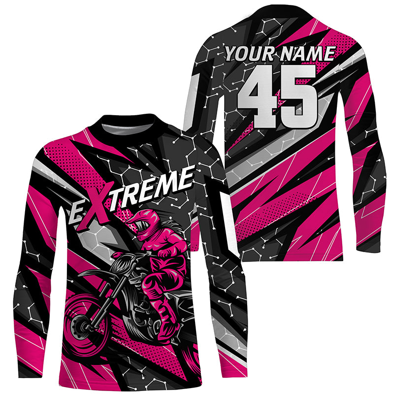Pink dirt bike jersey youth boys girls UPF30+ biker off-road extreme Motocross shirt motorcycle PDT291