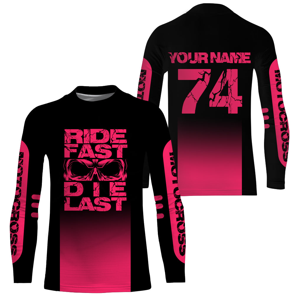 Ride Fast Die Last Motocross Jersey Men Kid UPF30+ Custom Pink Dirt Bike Shirt Off-Road Skull MX PDT578