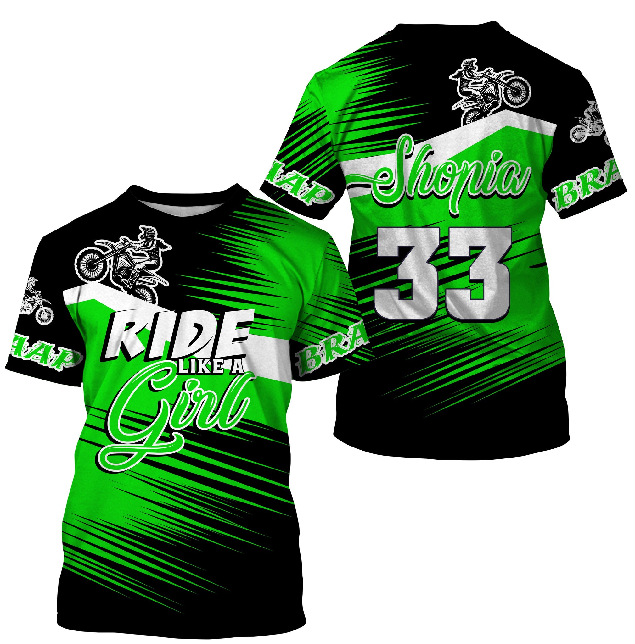 Ride Like A Girl Motocross Jersey Personalized UPF30+ Green Dirt Bike Riding Shirt Women Girls NMS737