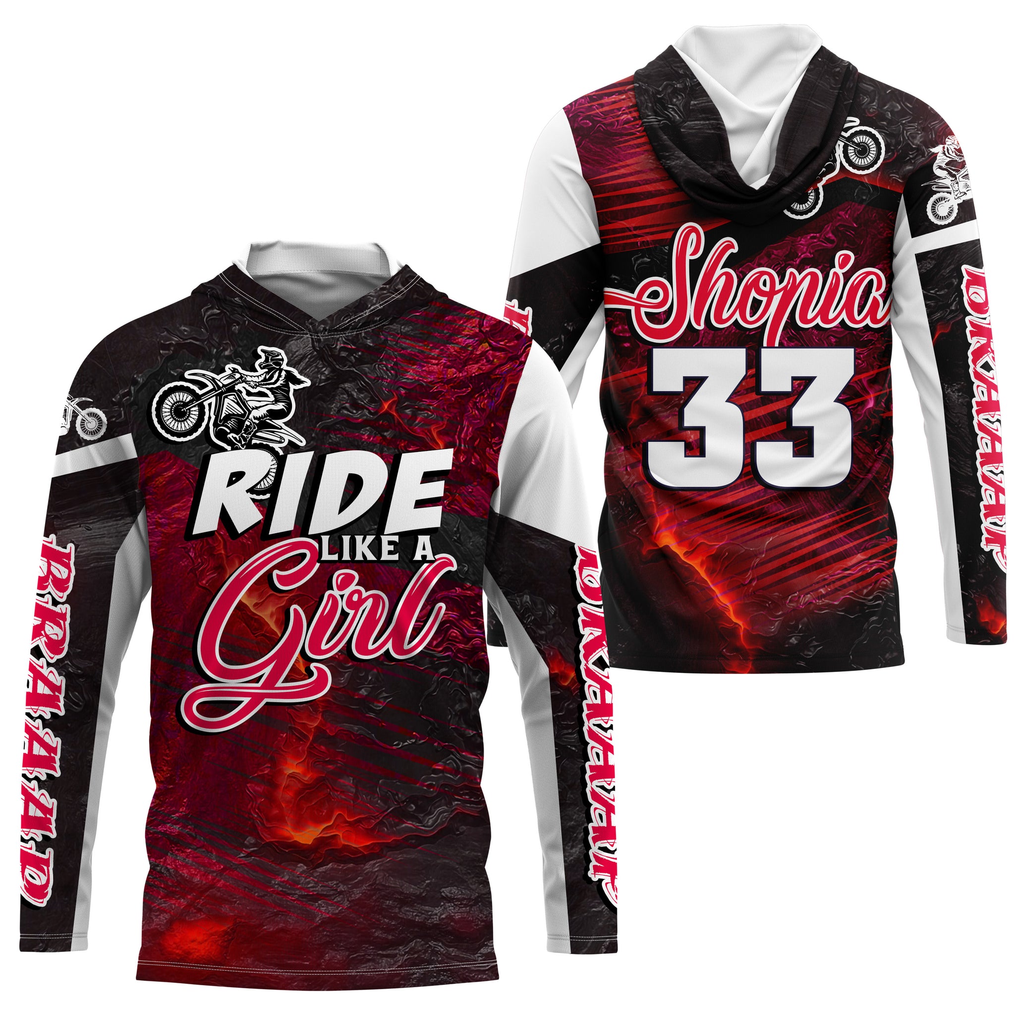 Ride Like A Girl Motocross Jersey Personalized UPF30+ Red Dirt Bike Riding Shirt Women Girls NMS741