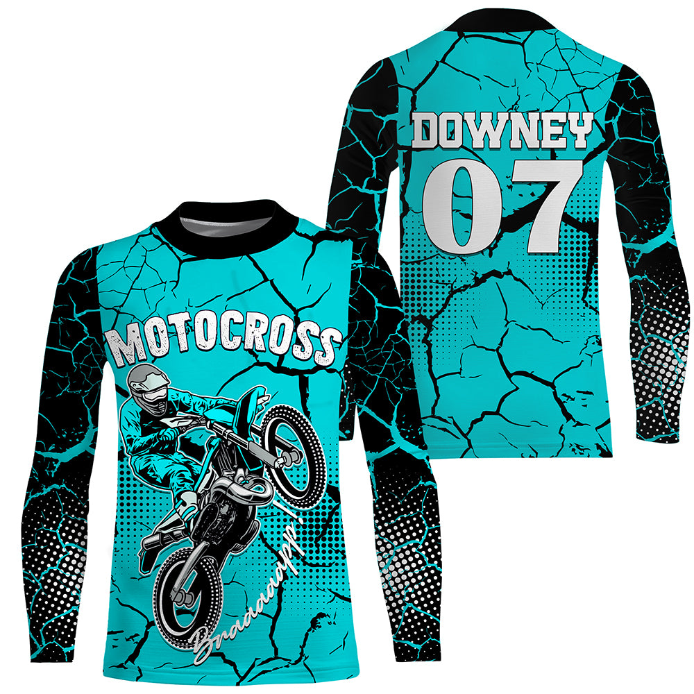 Turquoise Personalized Motocross Jersey UPF30+ Kid Men Women Dirt Bike Shirt MX Racing Off-road NMS1452