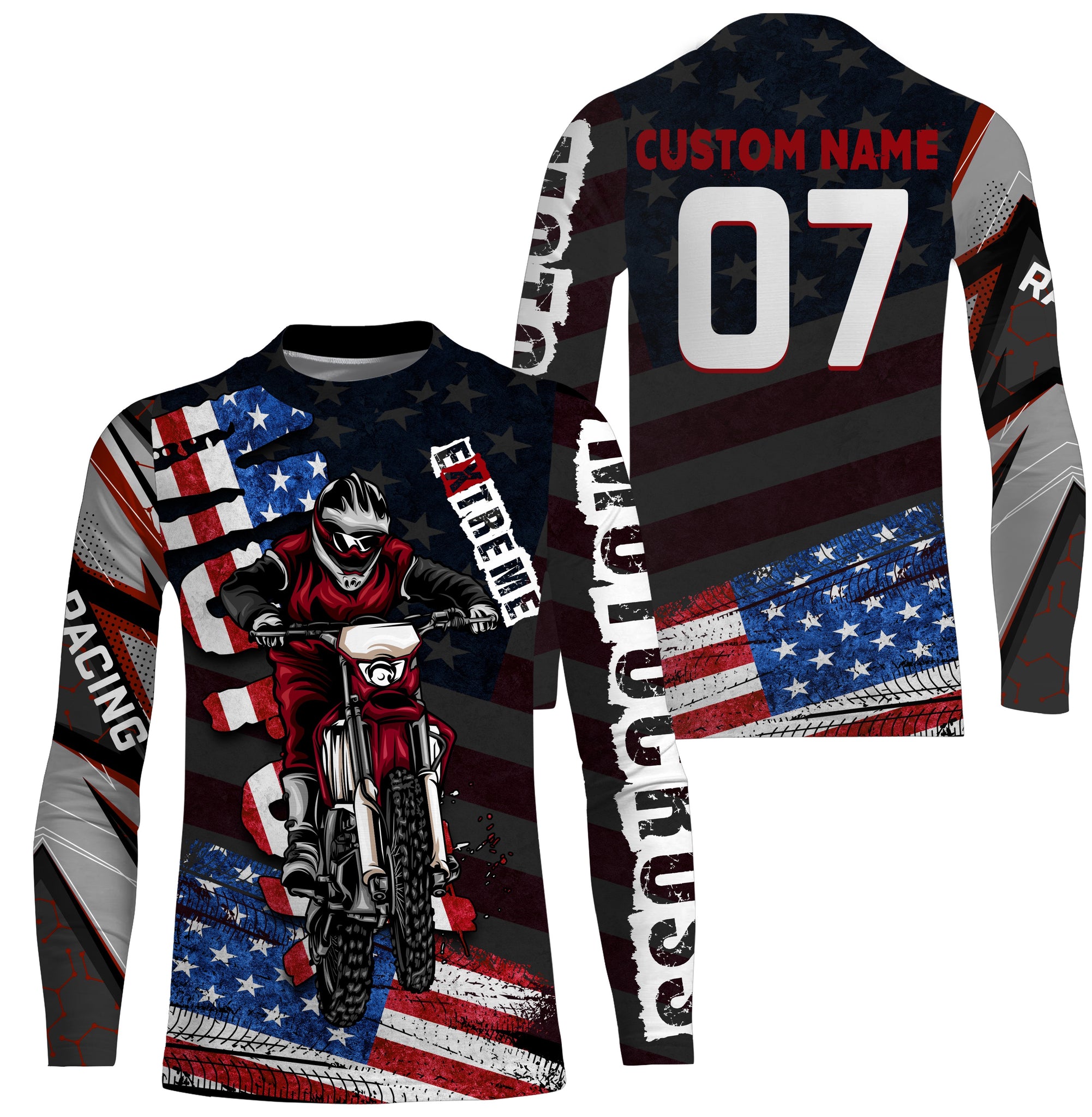 USA Flag Motocross Jersey Men Youth Women UPF30+ Personalized Dirt Bike Shirt Motorcycle Racing PDT695