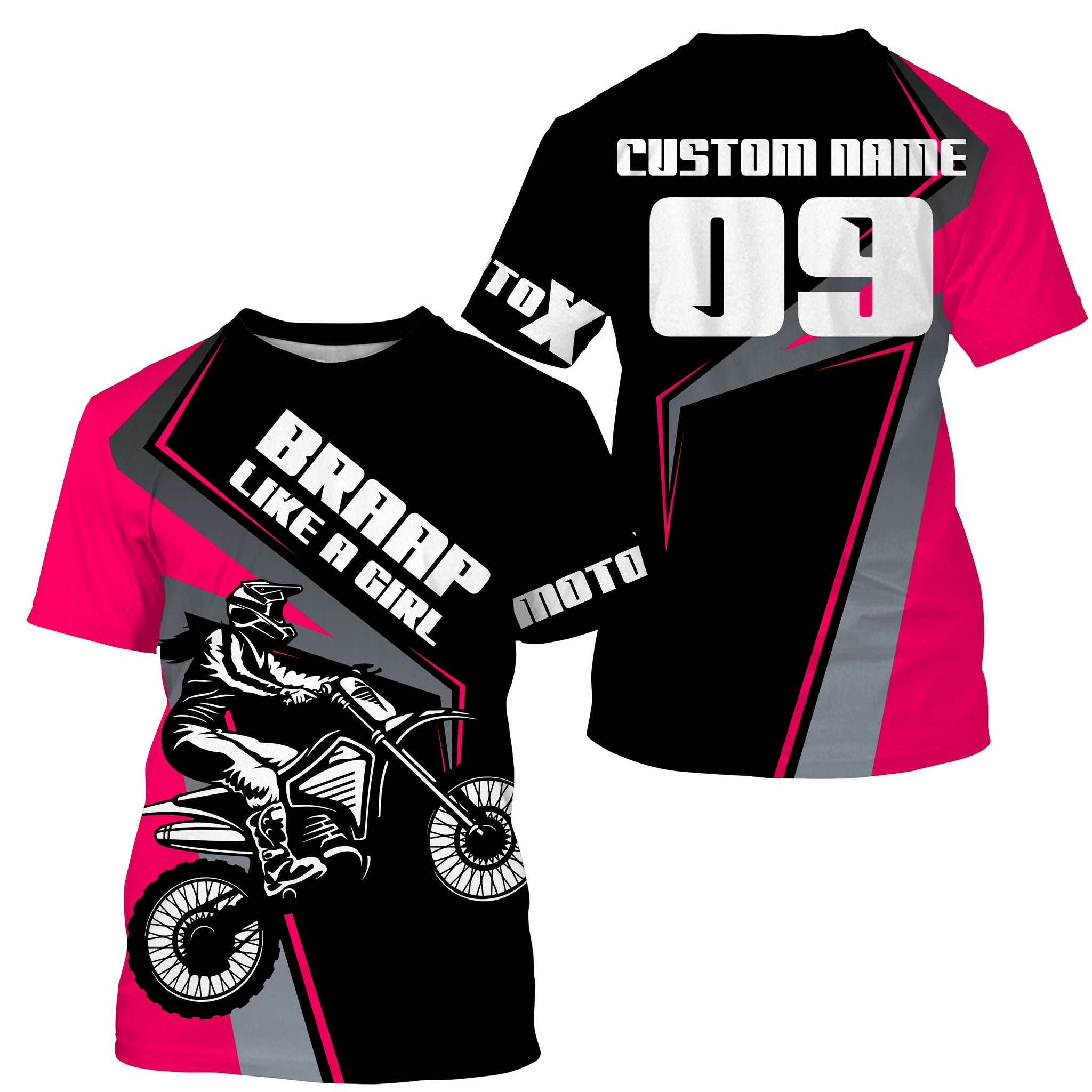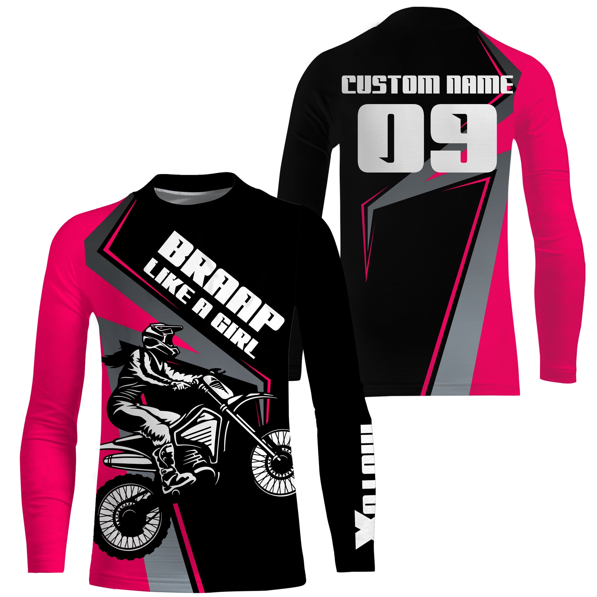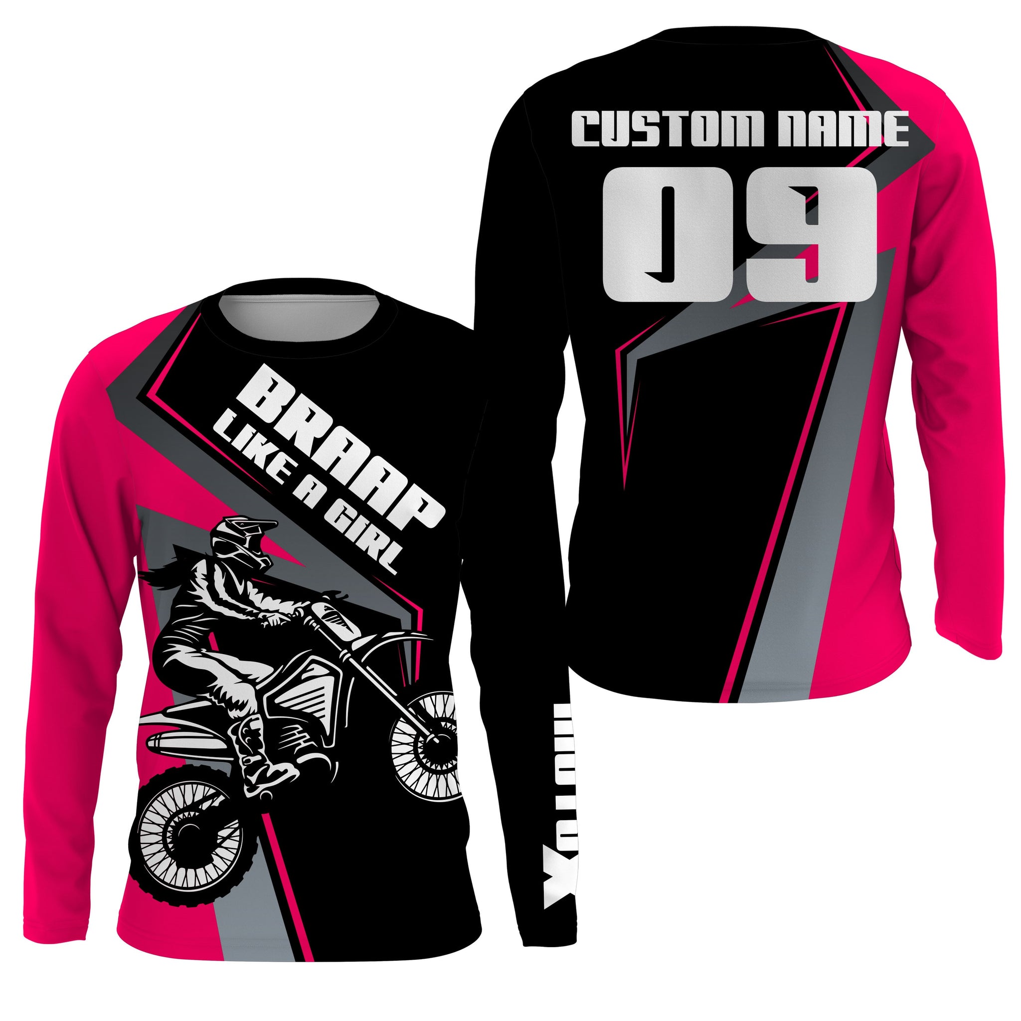 Women youth custom Motocross jersey pink UPF30+ dirt bike MX racing brap like a girl off-road shirt PDT228