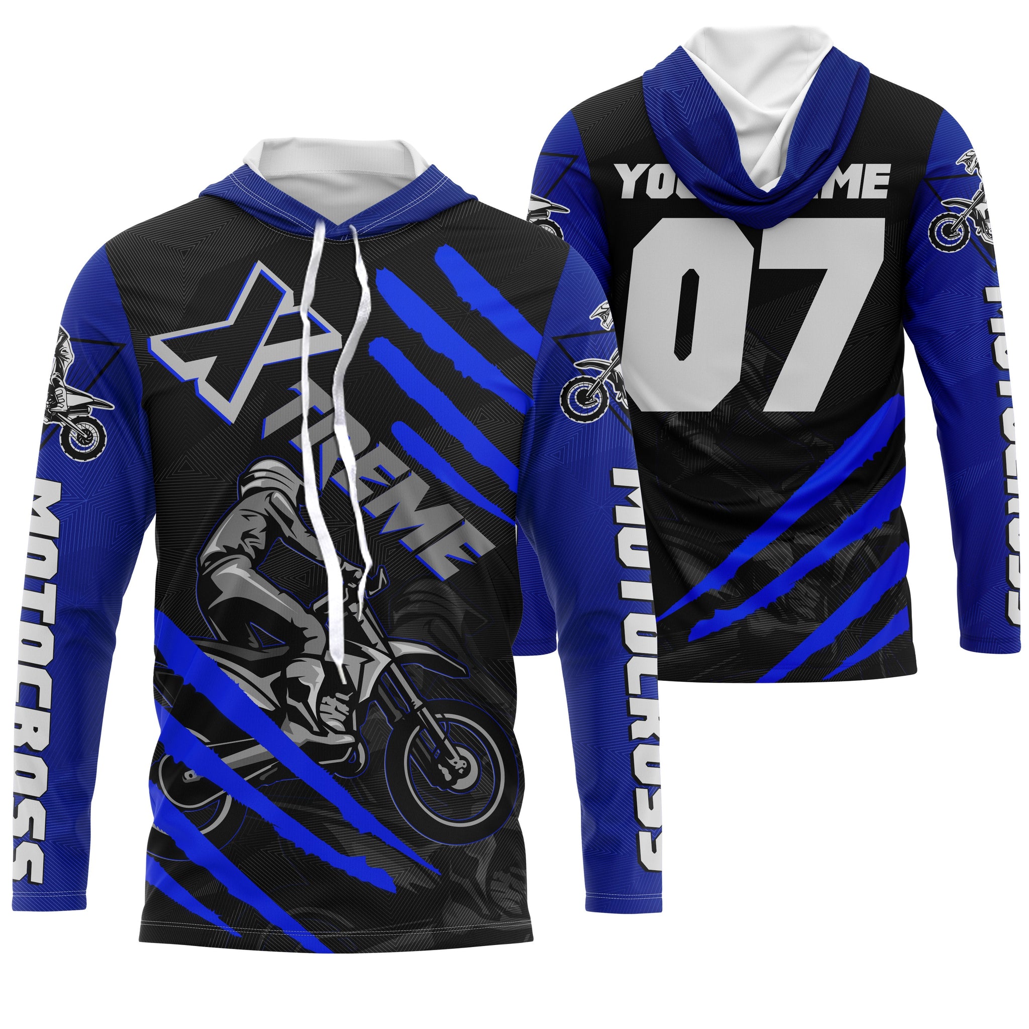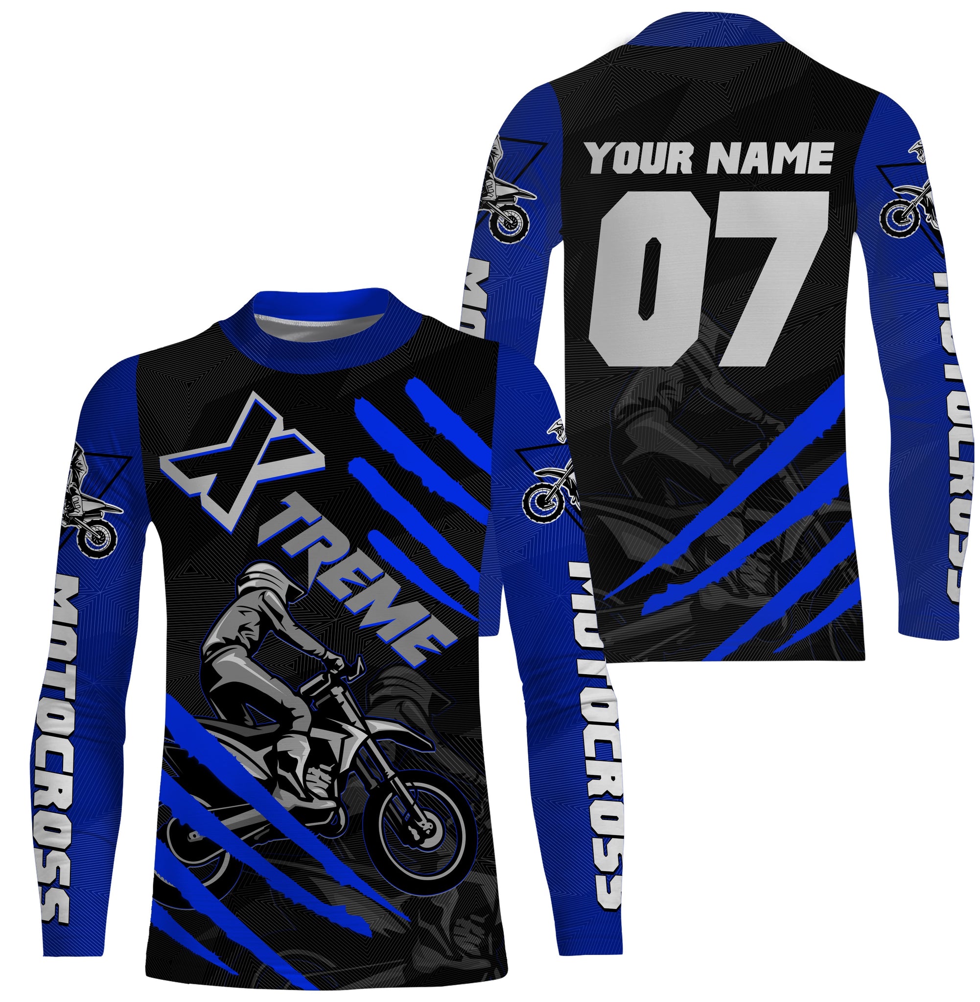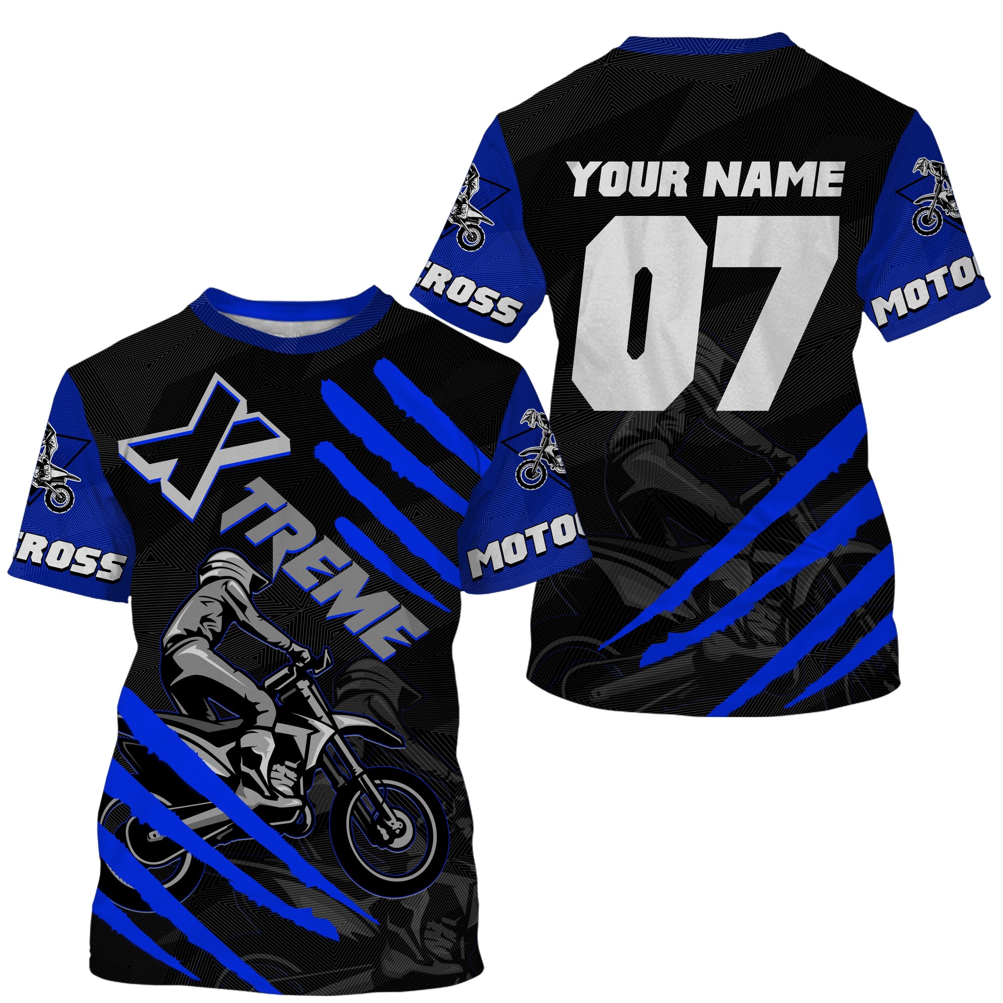 Xtreme customizable UPF30+ blue MX jersey for kid youth adult dirt bike racing shirt motorcycle PDT33