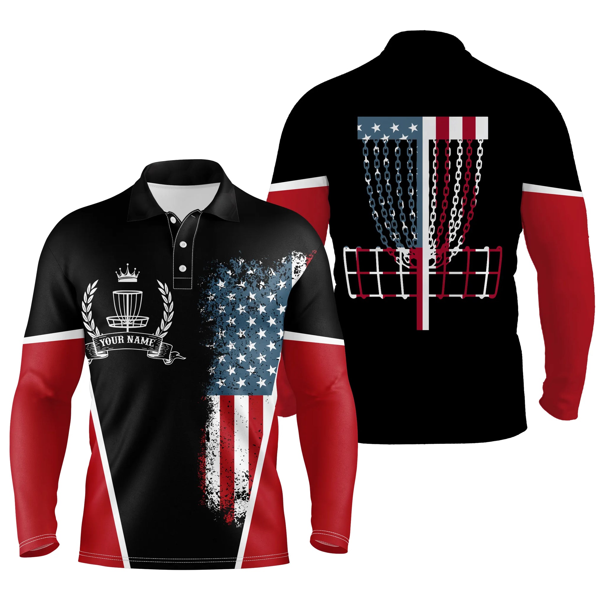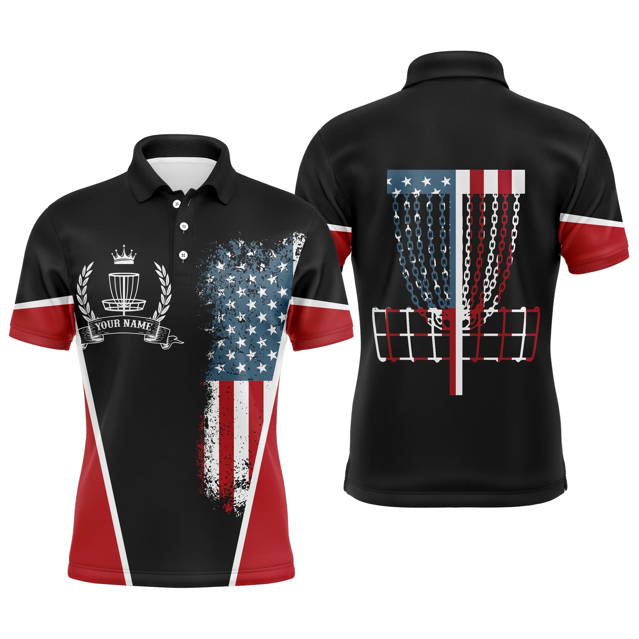 American flag Disc golf basket patriotic Men polo shirts custom name disc golf shirt for mens NQS4997