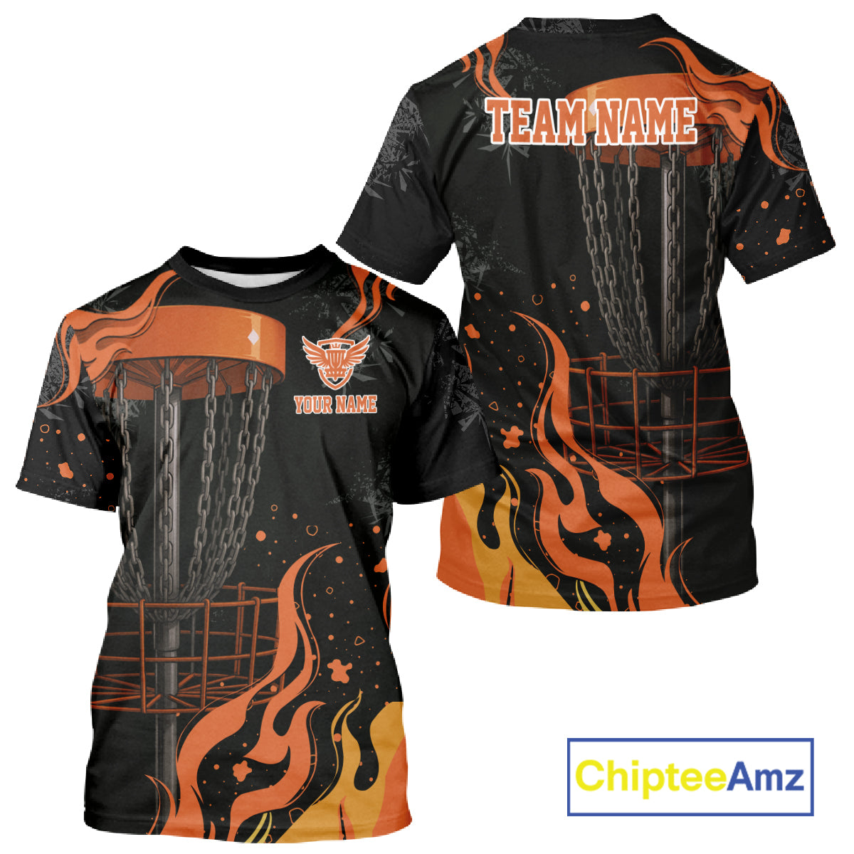 Black and Orange Flame Disc Golf basket Disc golf T-Shirt Custom team disc golf outfit NQS10811