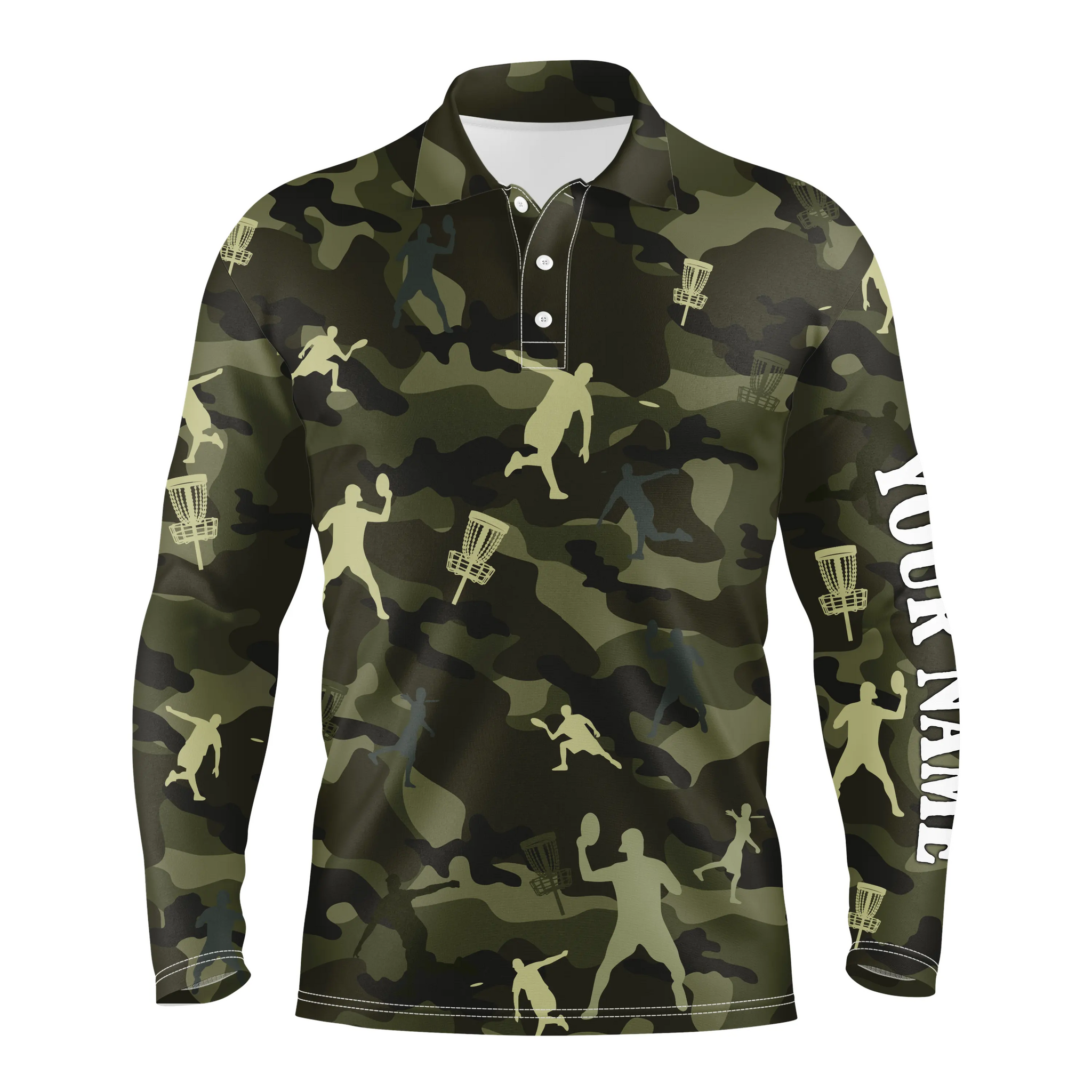 Green camo disc golf Men polo shirts custom name disc golf polo shirts for men, disc golfing gifts NQS4658
