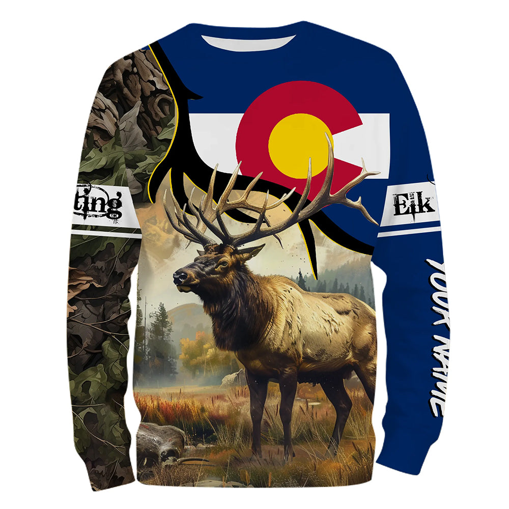Colorado CO Elk Hunting camo Customize Name 3D All Over Printed Shirts, Personalized hunting Gift NQS2142