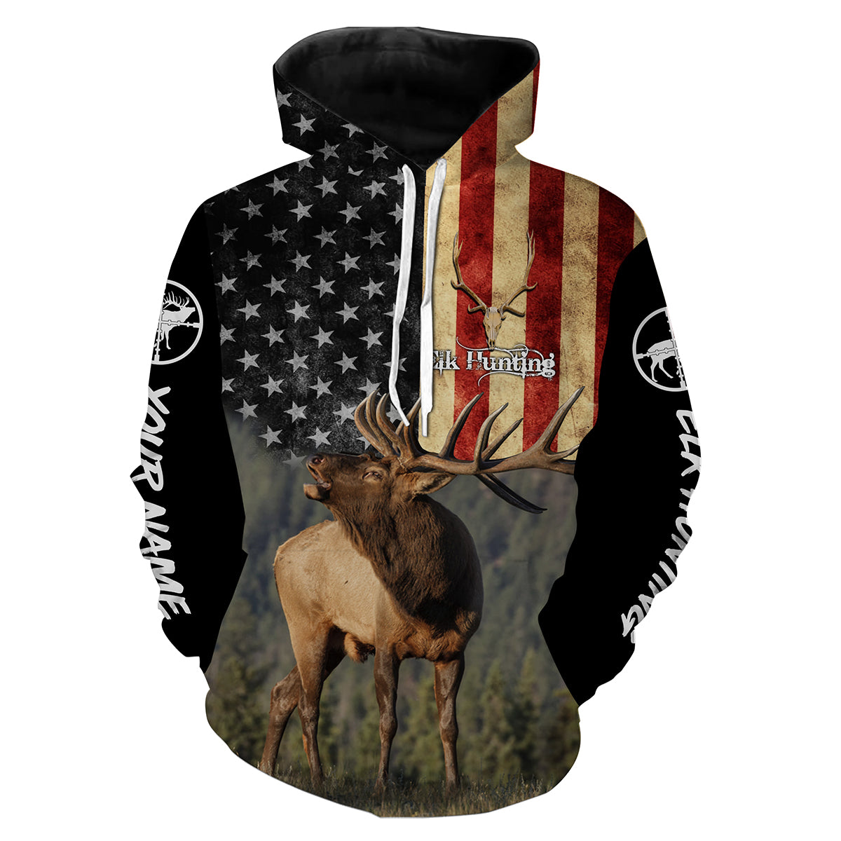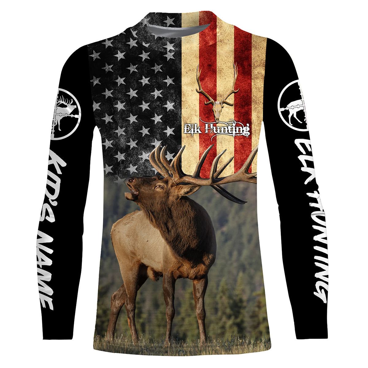 Elk hunting American flag Custom name All over print shirt, T-shirt, Hoodie, Long sleeve Hunting gift FSD3165