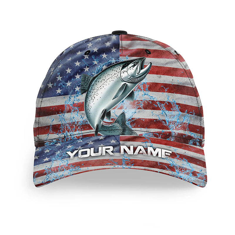 American flag patriot Chinook Salmon Fishing Baseball Angler Hat Cap, Personalized Salmon Fishing Gift NQS8298