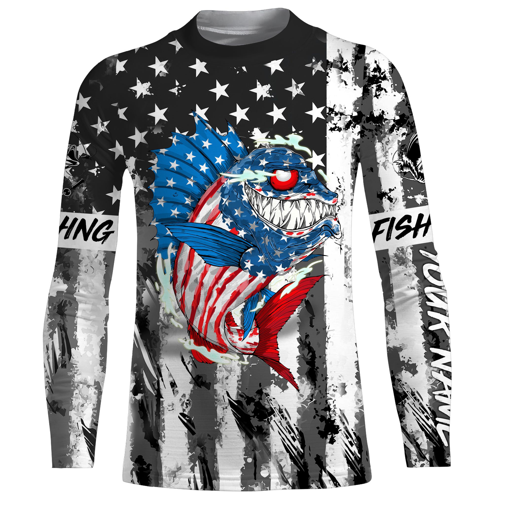 American flag angry bass fishing ChipteeAmz's art shirts UV protection TATS213
