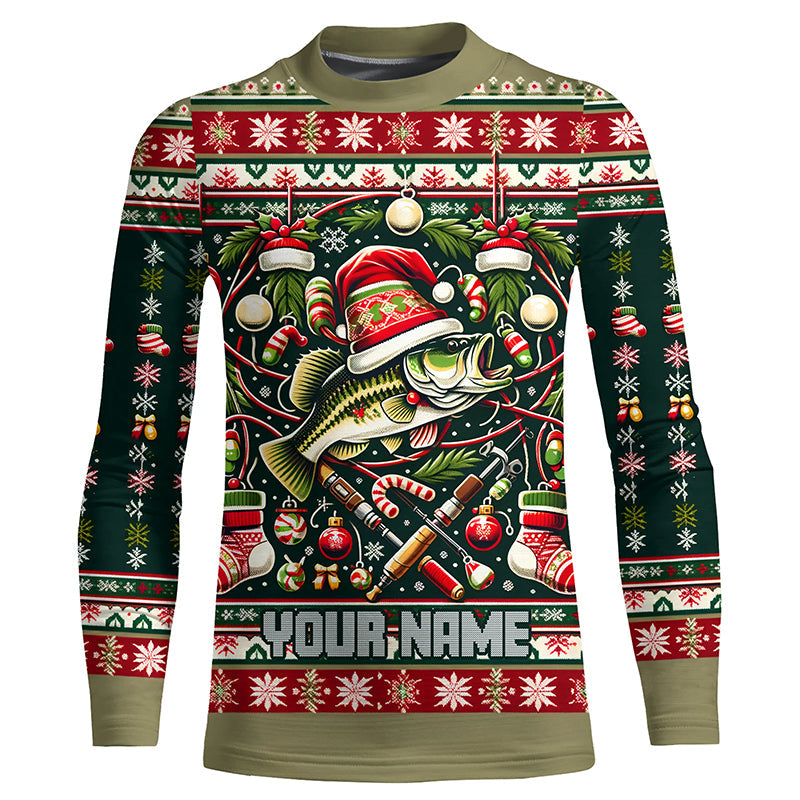 Bass Fishing Ugly Sweater Pattern Christmas Custom Fishing Shirts Personalized Fishing Gifts IPHW5563