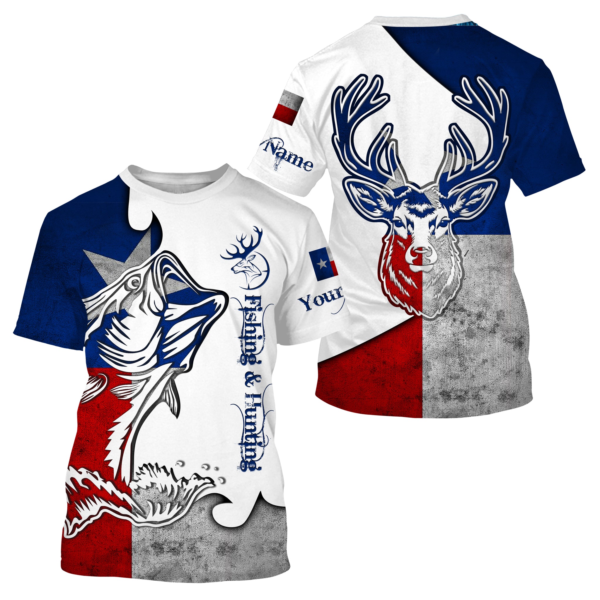 Texas Fishing and Hunting Deer and Bass all over print shirt - Personalized Gift for Hunter Fisherman FSD3191