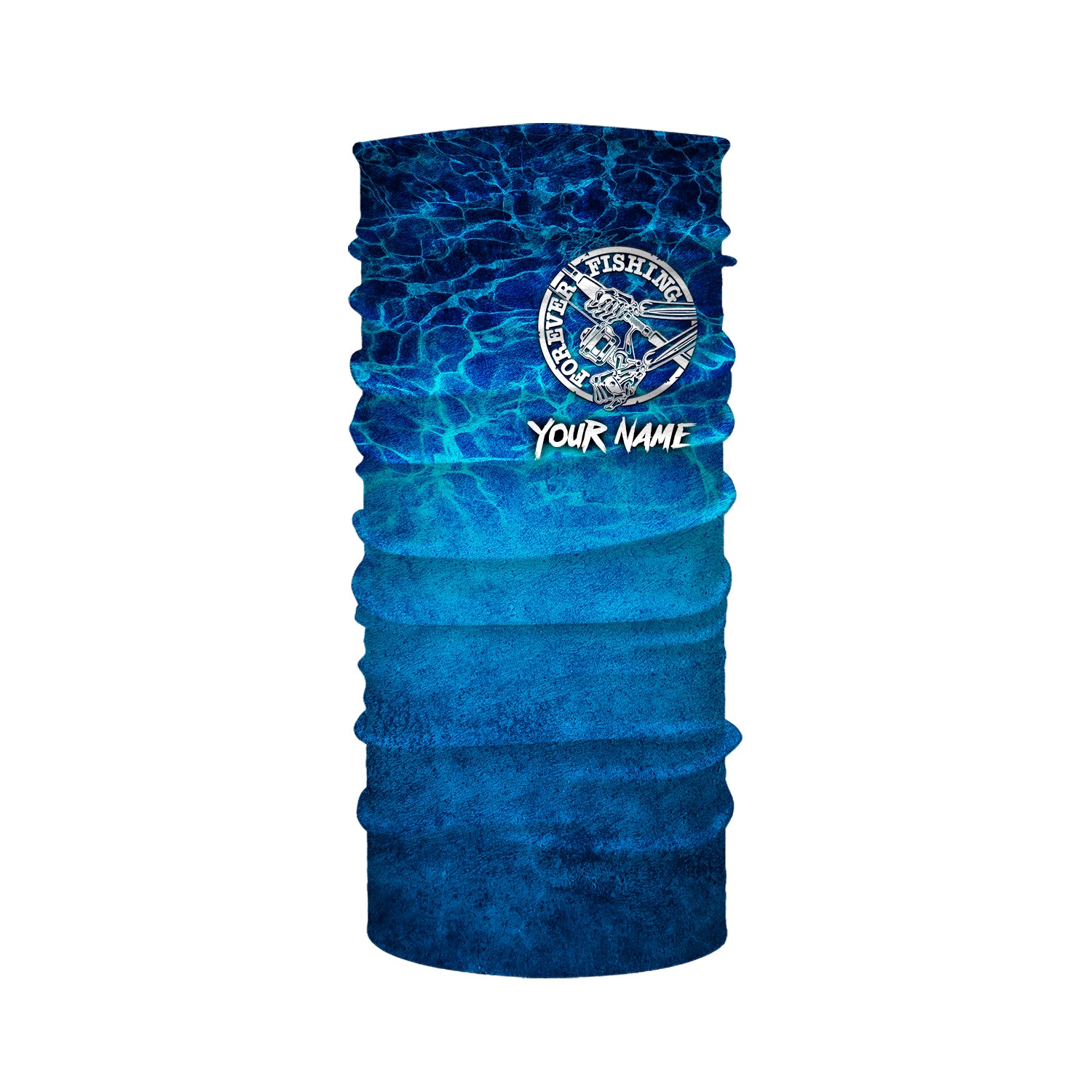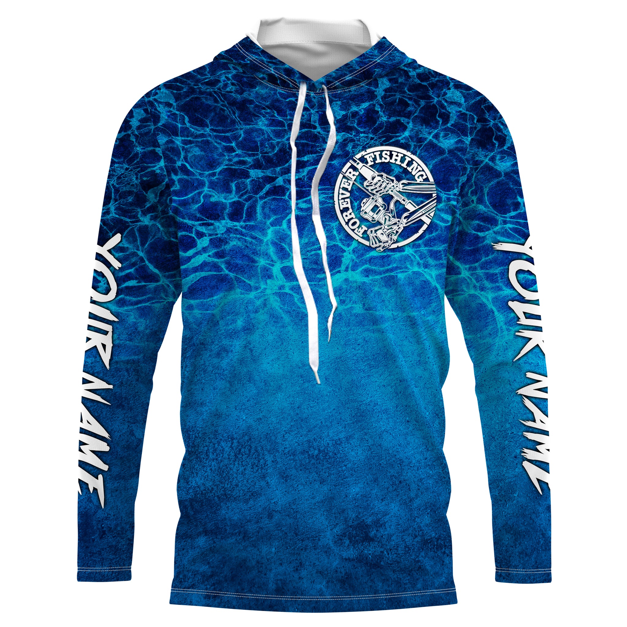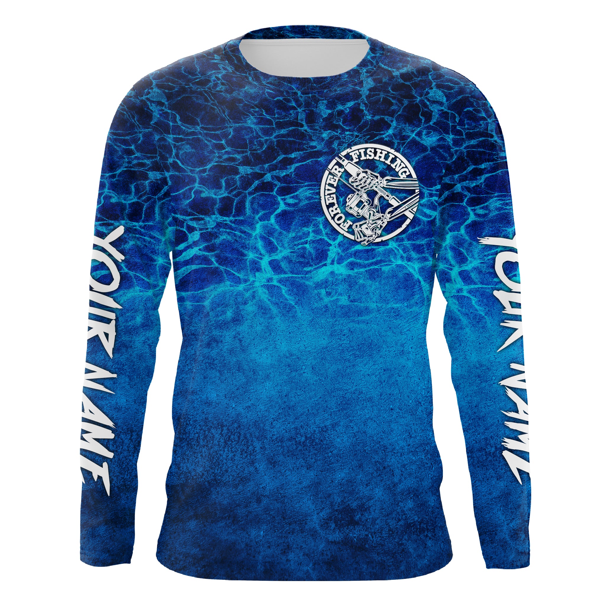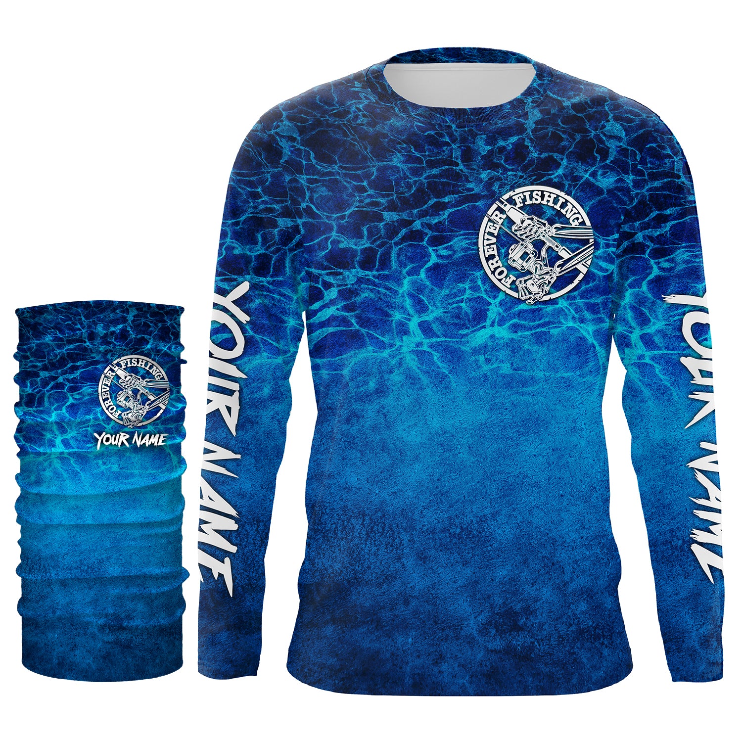 Funny Skeleton Forever Fishing Jerseys, Blue Deep Sea Camo Custom Long sleeve performance Fishing Shirts TTN93
