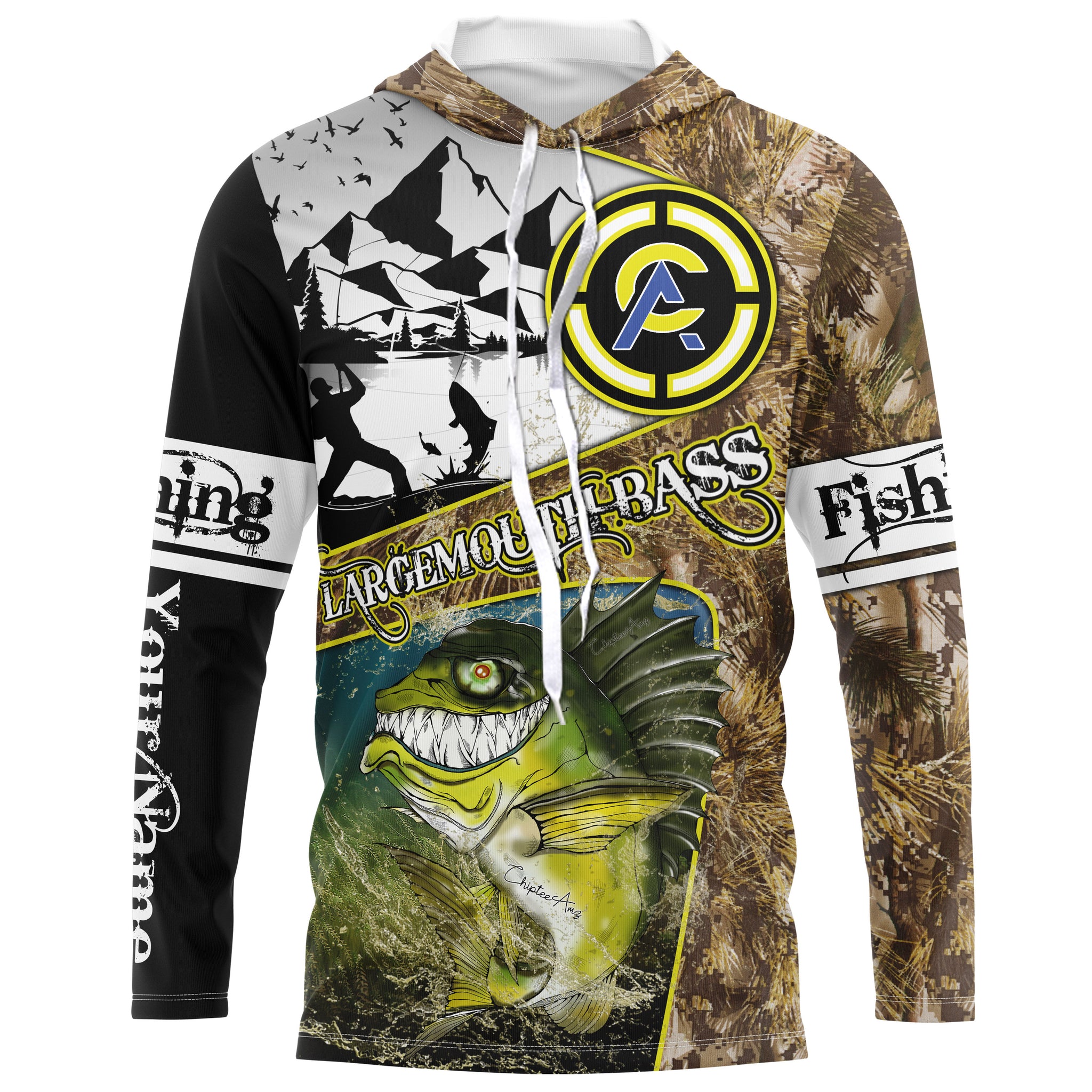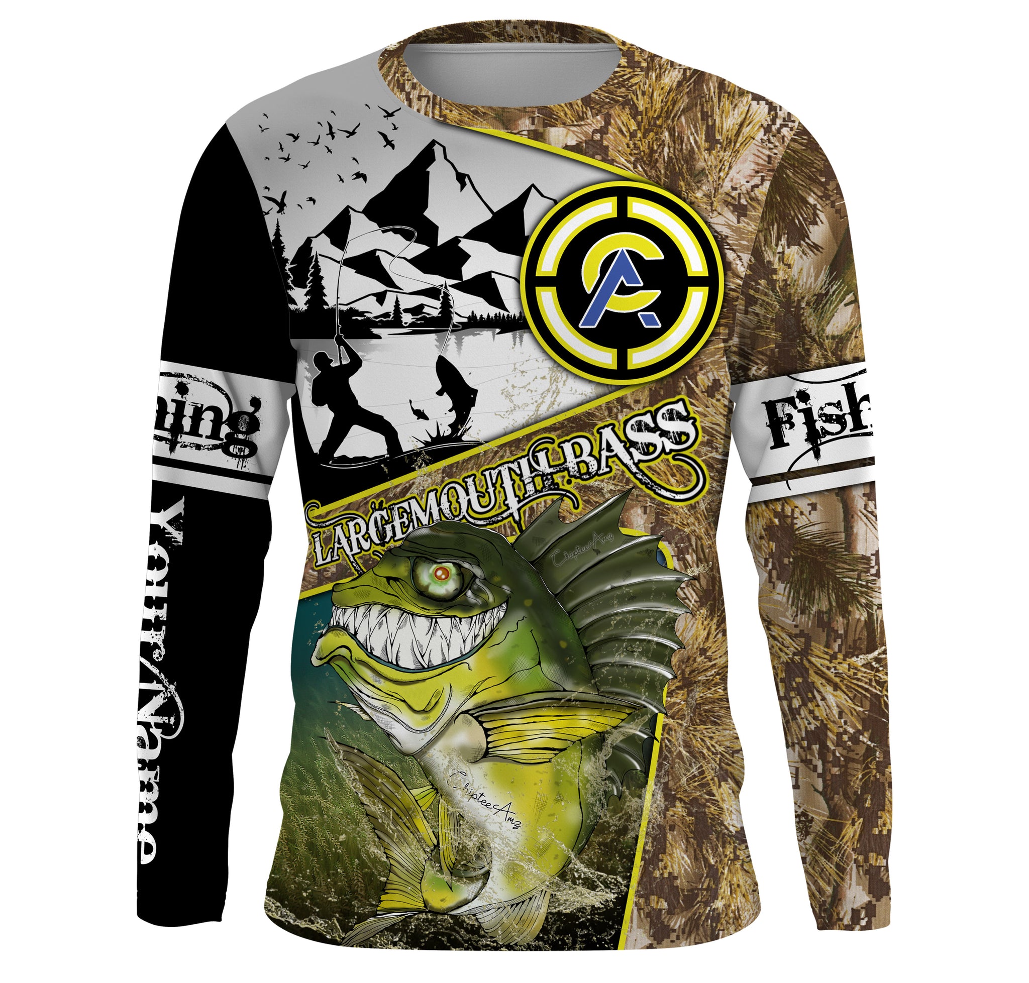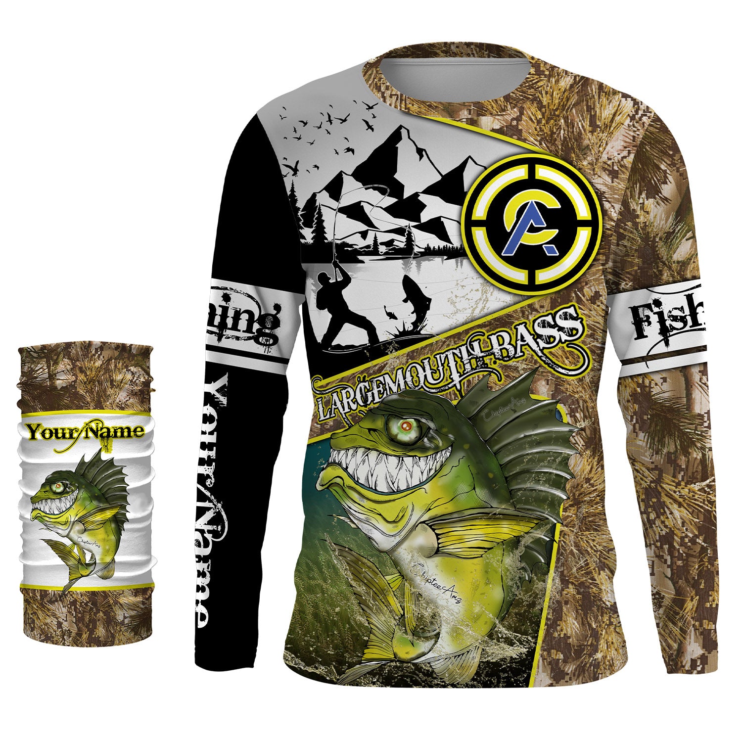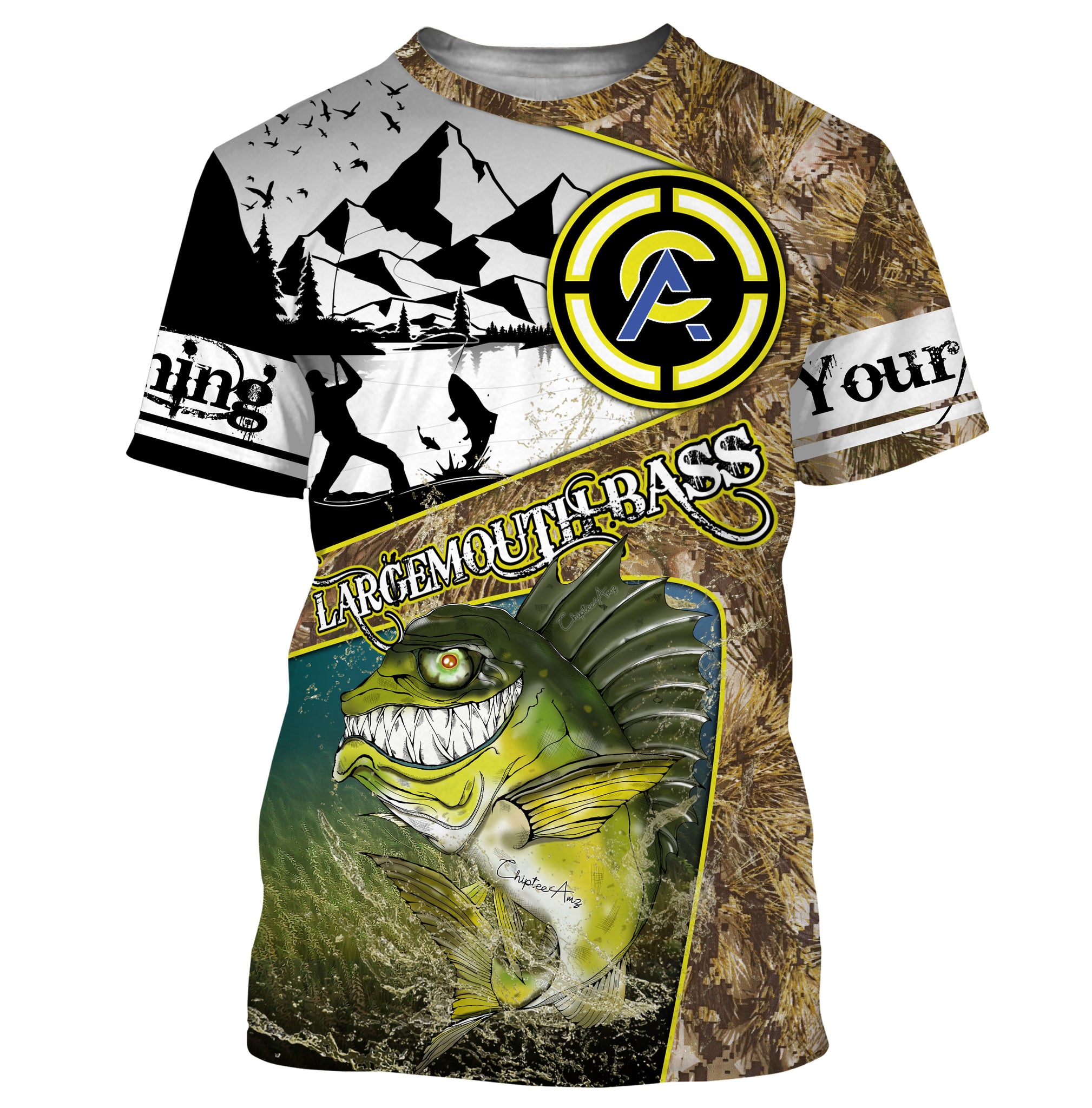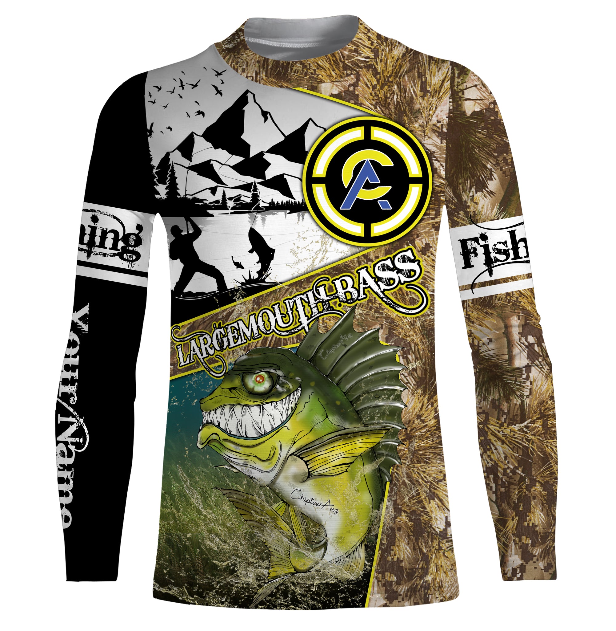 Largemouth Bass fishing camo custom name with funny Bass angry ChipteeAmz's art UV protection shirts AT017