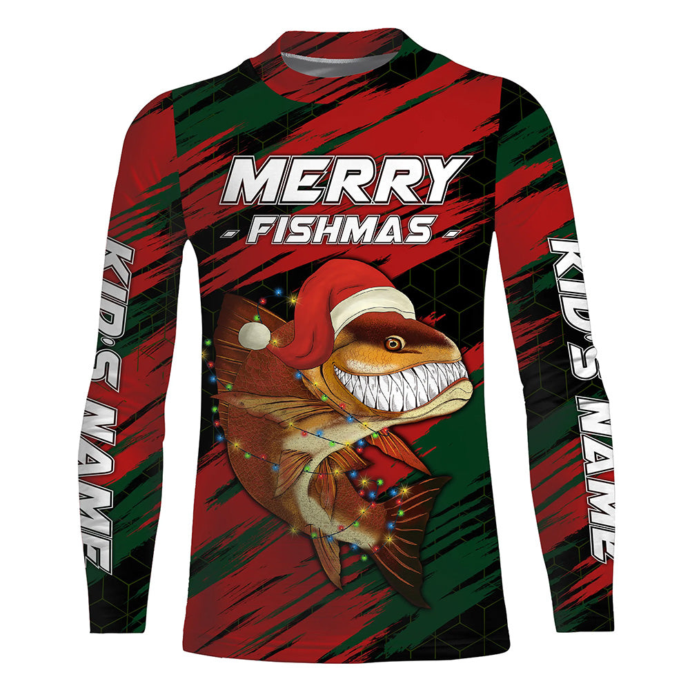 Personalized funny Christmas Redfish Fishing Shirts, Mery fishmas Fishing gift for men, women, kid NQS6817