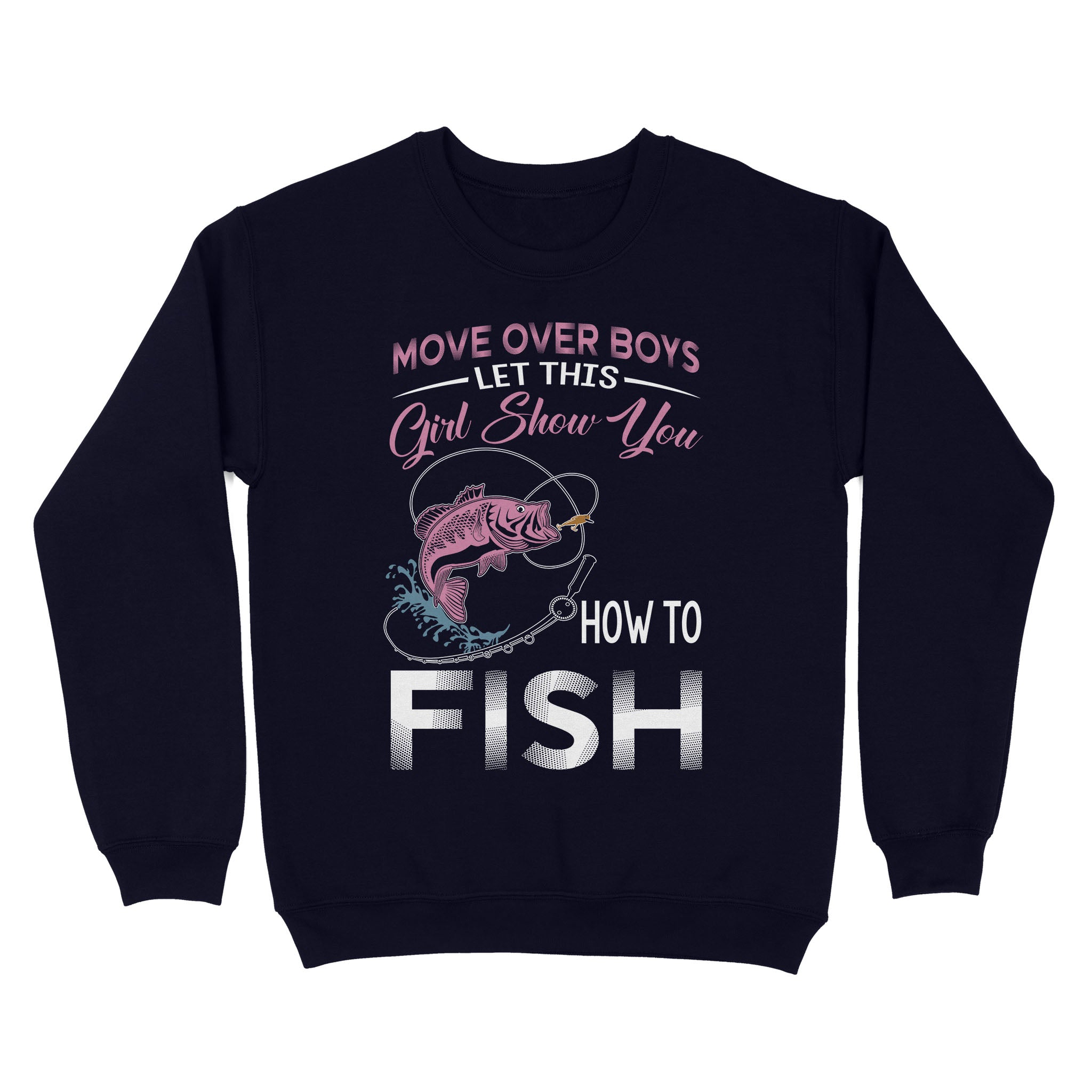 Move over boys let this girl show you how to fish pink women fishing shirts D02 NQS2824 - Standard Crew Neck Sweatshirt