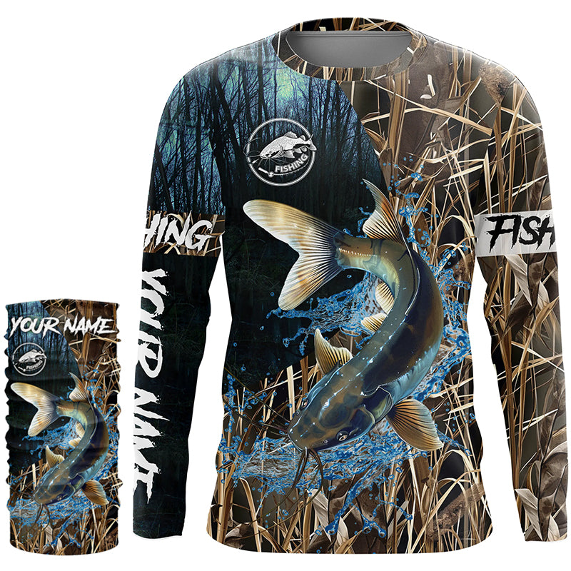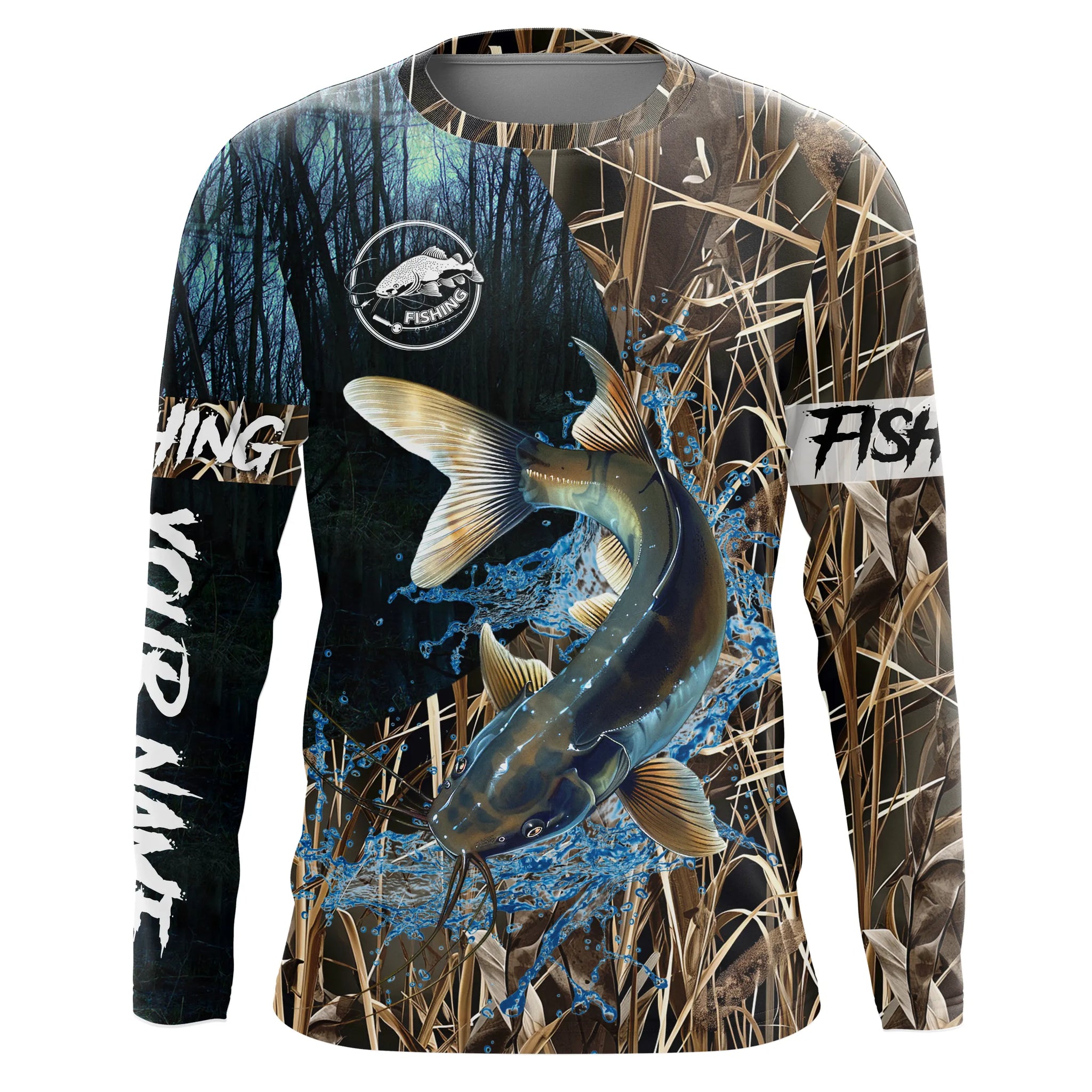 Catfish Fishing Camo Custom name Long sleeve fishing shirts, Catfish Fishing Jerseys NQS617