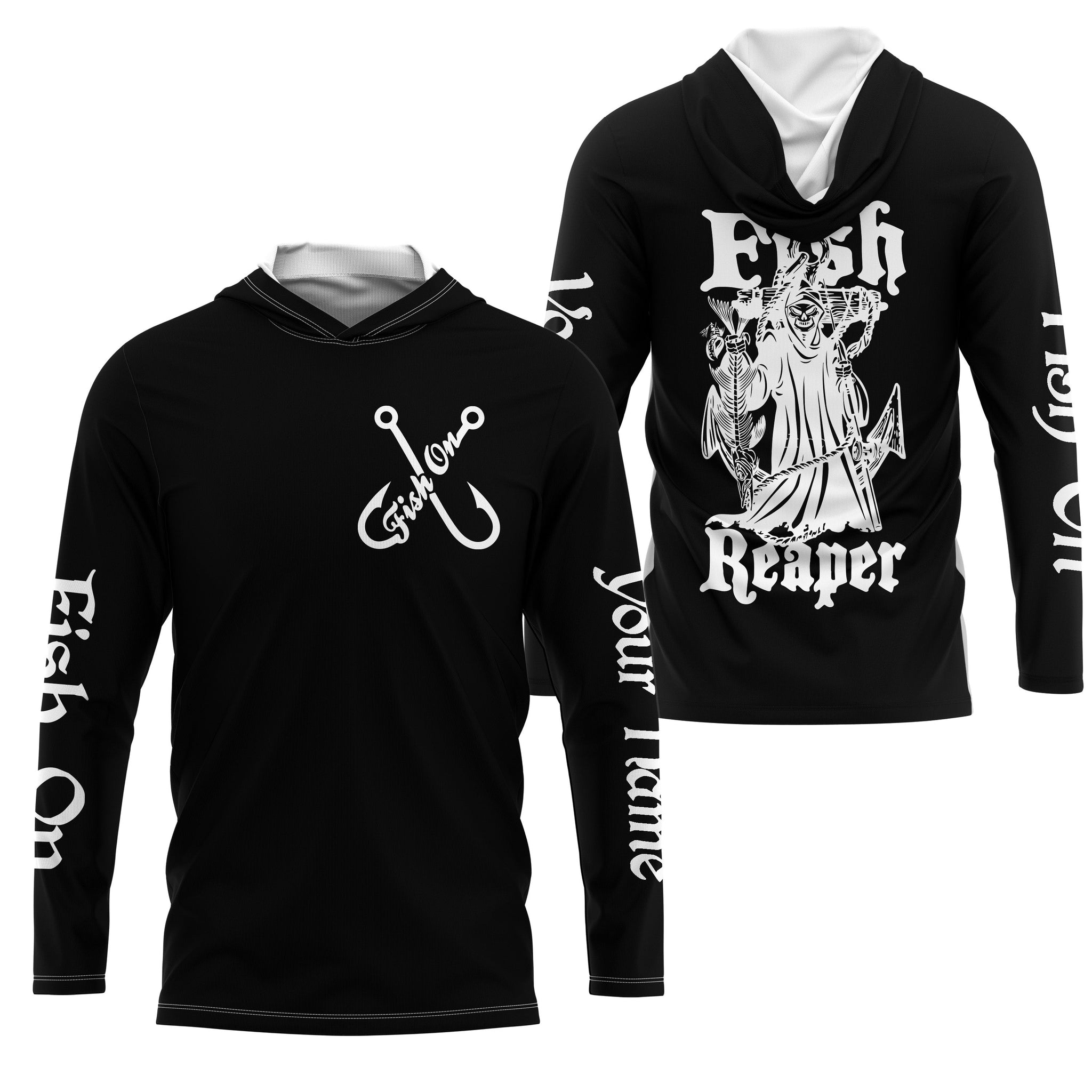 Fish Reaper Fish on black custom name UV protection Shirts custom long sleeve, hoodie fishing shirts NQS2857