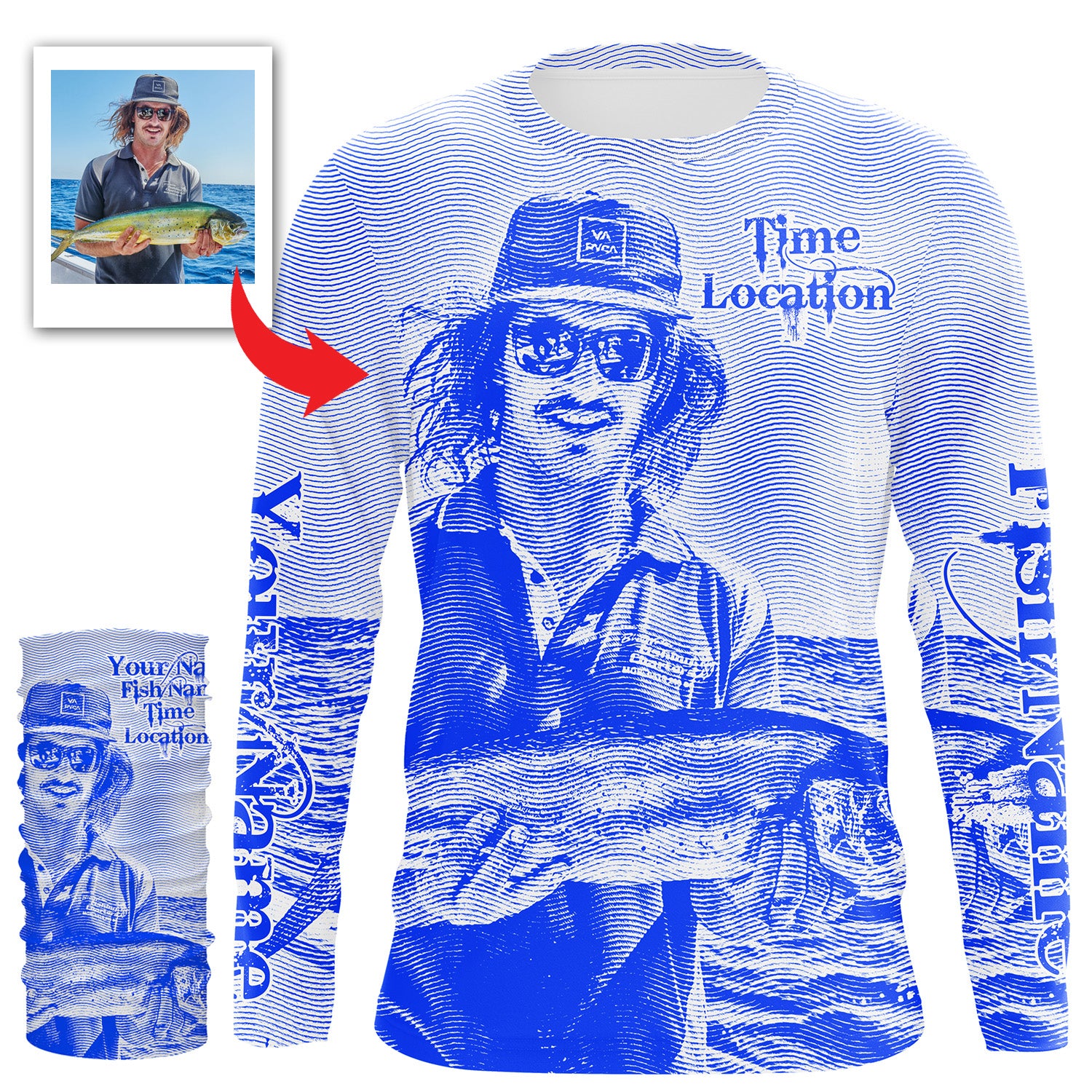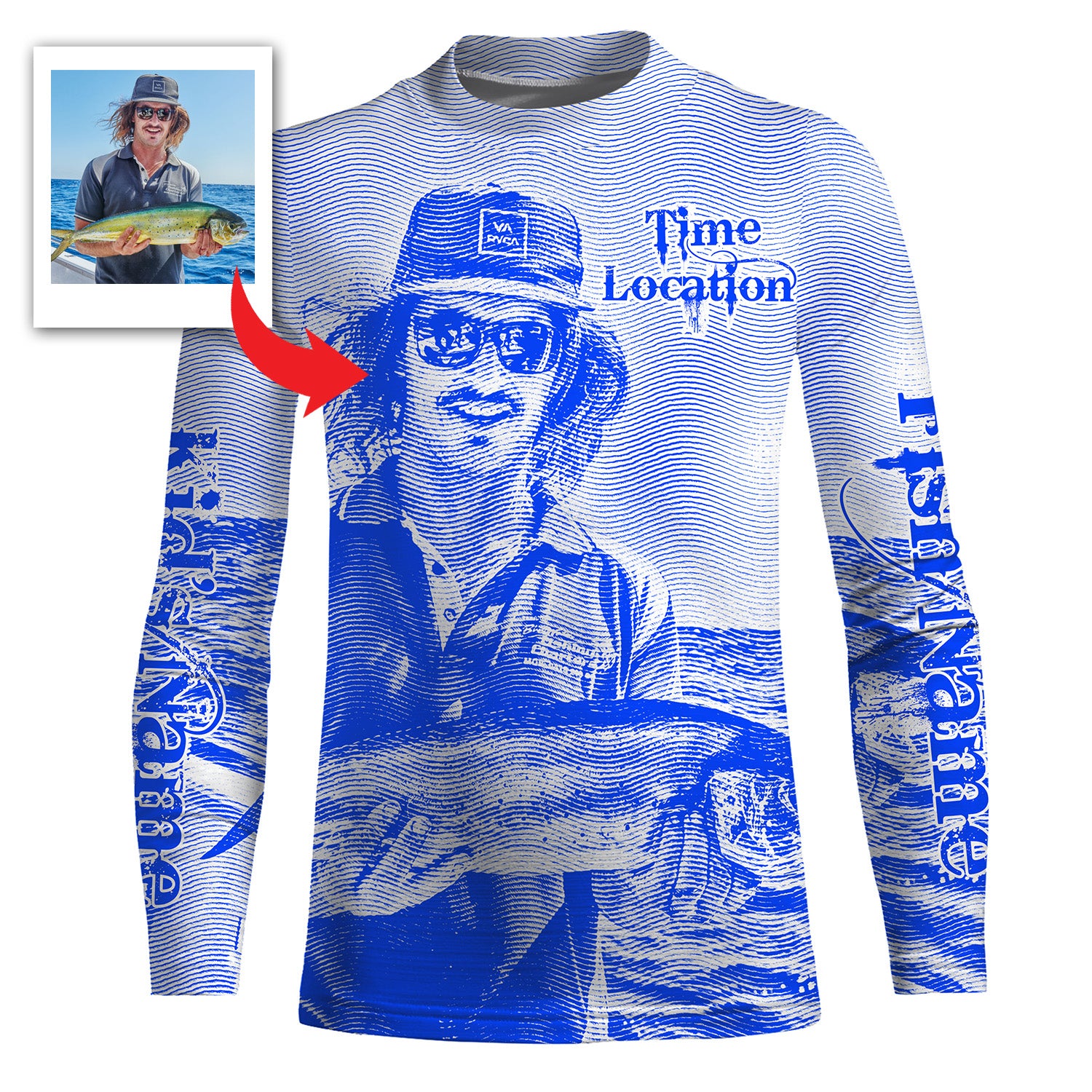 Fishing Shirt Custom Name, Image, Time, Location 3D UV protection Shirts UPF 30+ Fishing gift| Blue - TMTS050